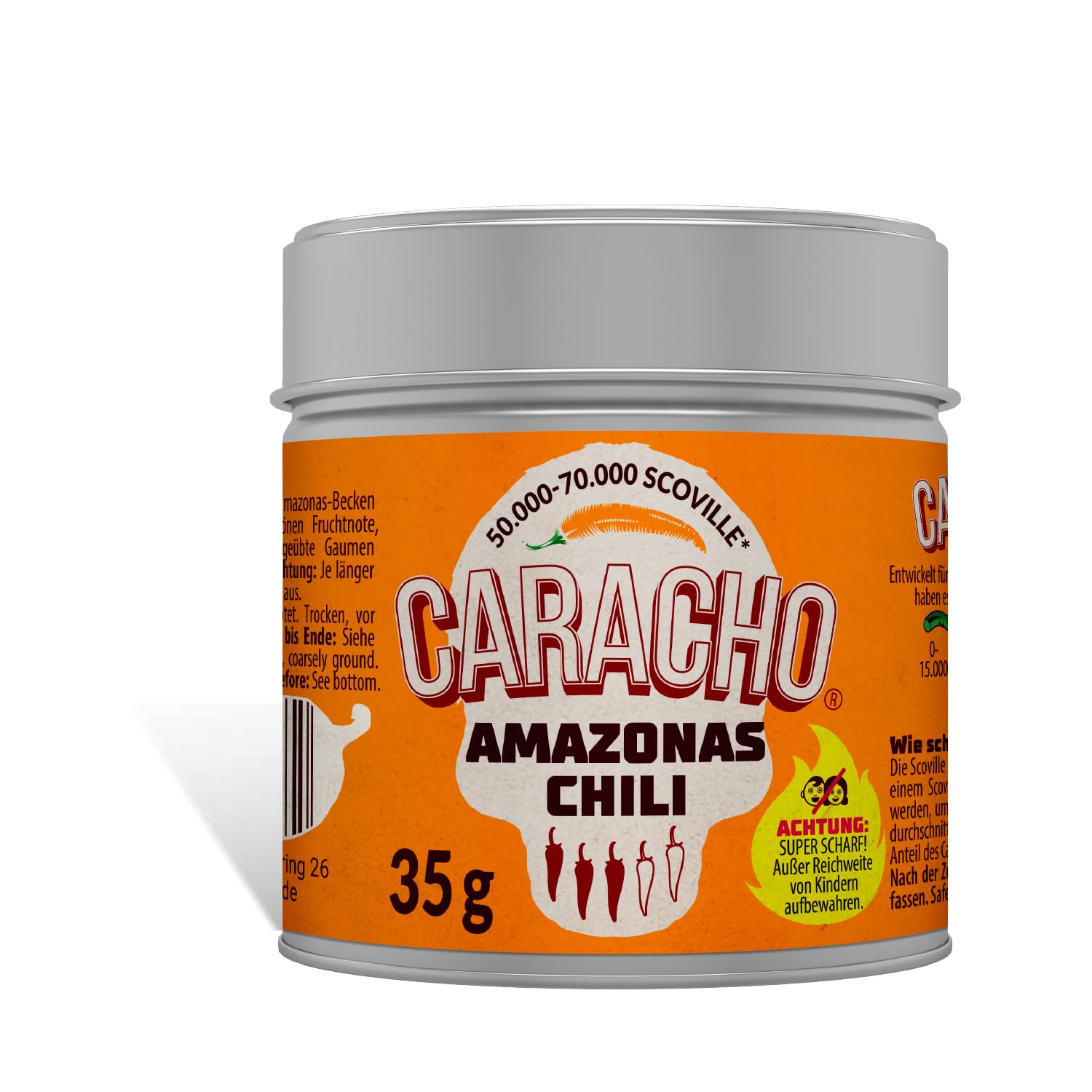 ian Chili Pepper: This nearly ripe yellow chili pepper, with a sharpness scale of 50 to 70,000 Scoville, is one of the spicy but not extremely hot varieties. Its attractive fruit aroma is reminiscent of the related Tabasco chili pepper. Perfect not only for chili lovers, but also for anyone who enjoys a taste challenge. INGREDIENTS 100 asSharp: Three out of five chilies, these wicked flakes are guaranteed not to be for beginners. 50,000-70,000 Scoville await the brave tester and guarantee a super sharp burning effect with a mild note at the beginning. Incredibly delicious and incredibly spicy. Not to be underestimated. With their smoky taste, they can be the perfect addition to many dishes of Mexican cuisine. Premium quality: This elegant metal tin not only looks beautiful in the spice rack, but is also perfect as a gift or souvenir. ian chili flakes are extremely economical, so you can cook with fire for a long time. Get the sharpness with Caracho!ch not only looks beautiful in the spice cabinet, but is also perfect as a gift and souvenir. Made in Germany: Of course, our products come from all over the world, but we are proud to fill our products in Germany and adapt them to the quality standards of our country. The best chili pepper fans offer and meticulously take care to select only the highest quality and tastiest chili peppers of all!. CARACHO: We are the chili pepper experts. We specialize in collecting the finest, sharpest, and most demanding chili peppers from around the world for you. Convince yourself. Lots of love and after many bite tests, here are our first favorites, with: CHIPOTLE chili flakes!. AS: Discover the sharpness of South America with CARACHO as chili flakes. They are characterized by a mild sharpness with a careful burn and are a good gift for all fans of sharpness. Piment d'ie : ce piment jaune presque mûr, avec une échelle de netteté de 50 à 70 000 Scoville, est l'une des variétés épicées mais pas extrêmement piquantes. Son arôme de fruit attrayant rappelle le piment Tabasco apparenté. Parfait non seulement pour les amateurs de piment, mais aussi pour tous ceux qui aiment relever des défis gustatifs. INGRÉDIENTS 100 asTranchant : trois piments sur cinq, ces flocons méchants ne sont pas garantis pour les débutants. 50000-70000 Scoville attendent le testeur courageux et garantissent un effet de combustion super net avec une note douce au début. Incroyablement délicieux et incroyablement épicé. Ne pas sous-estimer. Avec leur goût fumé, ils peuvent être le complément parfait dans de nombreux plats de la cuisine mexicaine. Qualité supérieure : cette élégante boîte en métal est non seulement belle dans l'étagère à épices, mais est également parfaite comme cadeau ou souvenir. Les flocons de piment ien sont extrêmement économiques, de sorte que vous pouvez cuisiner avec feu pendant longtemps. Obtenez le tranchant avec Caracho!ch non seulement beau dans l'armoire à épices, mais aussi parfait comme cadeau et souvenir. Fabriqué en Allemagne : bien sûr, nos produits proviennent du monde entier, mais nous sommes fiers de remplir nos produits en Allemagne et de les adapter aux normes de qualité de notre pays. Les meilleurs fans de piments offrent et veillent méticuleusement à ne choisir que les piments de la plus haute qualité et les plus savoureux de tous !. CARACHO : nous sommes les experts du piment. Nous nous spécialisons dans la collecte pour vous des piments les plus fins, les plus tranchants et les plus exigeants du monde entier. Laissez-vous convaincre par vous-même. Beaucoup d'amour et après de nombreux tests de touches, voici nos premiers favoris, avec : les flocons de piment CHIPOTLE !. AS : découvrez la netteté de l'Amérique du Sud avec les flocons de piment CARACHO as. Ils se caractérisent par un tranchant doux avec une combustion soignée et sont un bon cadeau pour tous les fans d'affûtage.