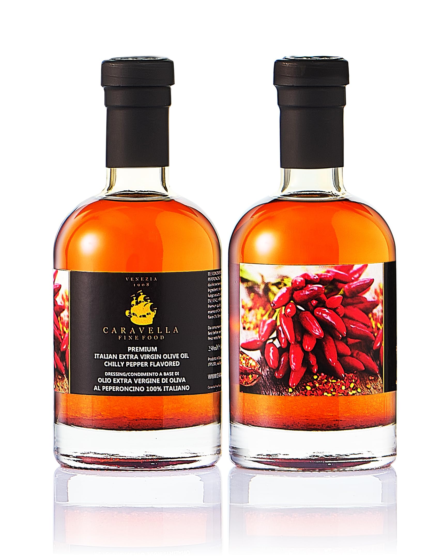 Discover the perfect harmony of taste, health and elegance with Caravella Fine Food Chilli Flavored Extra Virgin Olive Oil. Made by Caravella Fine Food, a renowned gourmet brand from Venice, Italy, this premium oil combines the rich, smooth taste of 100 Italian extra virgin olive oil with the bold, warming kick of natural chili. Ideal for sprinkling, cooking and dressing, it elevates any dish to an authentic Mediterranean refinement. More than just a culinary delight, this olive oil is a powerhouse of health benefits. Packed with antioxidants and vitamin E, it promotes healthy skin, boosts immunity and supports overall well-being. The chili infusion adds capsaicin, praised for its anti-inflammatory, digestion-boosting and metabolism-boosting properties. With its low acidity and heart-healthy monounsaturated fats, it helps lower bad cholesterol (LDL) and supports cardiovascular health. Packaged in an elegantly designed, reusable glass bottle, this oil enhances both your kitchen and table. The bottle is equipped with a special drip-free pouring cap for precise, mess-free use, ensuring convenience and style. As part of Caravella's commitment to sustainability, the packaging is eco-friendly and reusable, making it a thoughtful choice for the environment. Bring a touch of Venice to your table with Caravella Fine Food Chilli Flavored Extra Virgin Olive Oil, where world-class taste meets uncompromising quality and timeless Italian tradition.Caravella Fine Food Olijfolie Extra Vierge met Chili 250ml – 100 Italiaanse uit Venetië, Perfect voor Besprenkelen Koken Dressing BBQ - Metabolisme Boost Lage Zuurtegraad Rijk aan Antioxidanten Ontdek de perfecte harmonie van smaak, gezondheid en elegantie met Caravella Fine Food Chilli Flavored Extra Virgin Olive Oil. Gemaakt door Caravella Fine Food, een gerenommeerd gourmetmerk uit Venetië, Italië, combineert deze premium olie de rijke, zachte smaak van 100 Italiaanse extra vierge olijfolie met de gedurfde, verwarmende kick van natuurlijke chili. Ideaal om te besprenkelen, koken en aan te kleden, het tilt elk gerecht naar een authentieke mediterrane verfijning. Meer dan alleen een culinair genot, deze olijfolie is een krachtpatser van gezondheidsvoordelen. Boordevol antioxidanten en vitamine E, het bevordert een gezonde huid, verhoogt de immuniteit en ondersteunt het algehele welzijn. De chili-infusie voegt capsaïcine toe, geprezen om zijn ontstekingsremmende, spijsverteringsbevorderende en metabolisme-verhogende eigenschappen. Met zijn lage zuurgraad en hart-gezonde enkelvoudig onverzadigde vetten, helpt het slechte cholesterol (LDL) te verlagen en ondersteunt het de cardiovasculaire gezondheid. Verpakt in een elegant ontworpen, herbruikbare glazen fles, verbetert deze olie zowel uw keuken als tafel. De fles is uitgerust met een speciale druppelvrije schenkdop voor nauwkeurig, knoeivrij gebruik, wat gemak en stijl garandeert. Als onderdeel van Caravella's toewijding aan duurzaamheid is de verpakking milieuvriendelijk en herbruikbaar, wat het een doordachte keuze voor het milieu maakt. Breng een vleugje Venetië naar uw tafel met Caravella Fine Food Chilli Flavored Extra Virgin Olive Oil, waar smaak van wereldklasse samenkomt met compromisloze kwaliteit en tijdloze Italiaanse traditie.