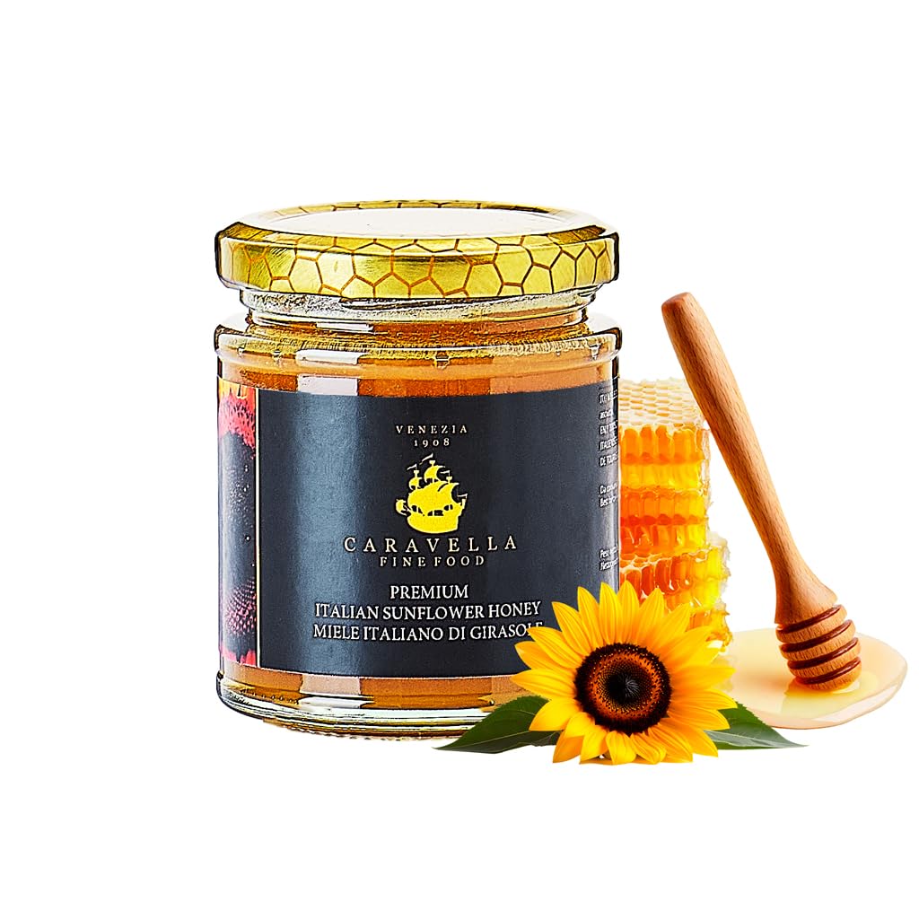 Caravella Fine Food Sunflower Honey 250g Italian Aromatic Floral Creamy Amber color Mild sweet Antioxidant Digestion Ideal for breakfast Croissant Cheese Boards Granola Tea