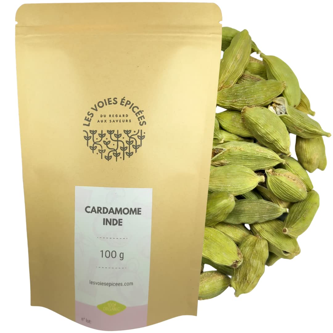 Cardamom is a spice with fresh, camphoraceous notes, with a delicate hint of eucalyptus. It is ideal for infusion, by crushing the pods with a pestle and immersing them in cold water. Then, heat the water in a covered saucepan until boiling. Strain the cardamom pods and use the infusion to cook rice or simply drink it as a herbal tea. Whole cardamom can also be roasted before being incorporated into a dish at the beginning of cooking to develop notes of roasted hazelnuts. This spice tolerates cooking well you can fry it in fat for a cardamom-flavored base. Some of our spice blends contain ground cardamom. INGREDIENTS 100 cardamom✓ Culinary Versatility: Cardamom stands up well to cooking. Fry it in fat to create a cardamom-flavored base, or use it in our spice blends containing ground cardamom to enhance your dishes. ✓ Roasting for Toasty Flavors: Before incorporating them into a dish, you can roast whole cardamom pods to develop toasted, nutty notes, adding an extra dimension to your recipes. ✓ Aromatic Infusion: Crush cardamom pods with a pestle and immerse them in cold water for a fragrant infusion. Heat the water to a boil, then strain the pods for a refreshing drink or use the infusion to cook rice. ✓ Fresh and floral aroma: Cardamom is a spice with fresh and floral notes, with a delicate touch of eucalyptus, offering a unique sensory experience. La cardamome est une épice aux notes fraîches et camphrées, avec une touche délicate d'eucalyptus. Elle est idéale pour l'infusion, en écrasant les gousses à l'aide d'un pilon et en les plongeant dans de l'eau froide. Ensuite, faites chauffer l'eau dans une casserole à couvert jusqu'à ébullition. Filtrez les gousses de cardamome et utilisez l'infusion pour cuire du riz ou tout simplement la boire en tisane. La cardamome entière peut également être torréfiée avant d'être incorporée à un plat en début de cuisson pour développer des notes de noisettes grillées. Cette épice supporte bien la cuisson, vous pouvez la faire revenir dans une matière grasse pour une base aromatisée à la cardamome. Certains de nos mélanges d'épices contiennent de la cardamome moulue. INGRÉDIENTS 100 cardamome✓ Polyvalence culinaire : La cardamome supporte bien la cuisson. Faites-la revenir dans une matière grasse pour créer une base aromatisée à la cardamome, ou utilisez-la dans nos mélanges d'épices contenant de la cardamome moulue pour rehausser vos plats. ✓ Torréfaction pour des saveurs grillées : Avant de les incorporer à un plat, vous pouvez torréfier les gousses de cardamome entières pour développer des notes de noisettes grillées, ajoutant une dimension supplémentaire à vos recettes. ✓ Infusion aromatique : Écrasez les gousses de cardamome à l'aide d'un pilon et plongez-les dans de l'eau froide pour une infusion parfumée. Faites chauffer l'eau jusqu'à ébullition, puis filtrez les gousses pour une boisson rafraîchissante ou utilisez l'infusion pour cuire du riz. ✓ Arôme frais et floral : La cardamome est une épice aux notes fraîches et floral, avec une délicate touche d'eucalyptus, offrant une expérience sensorielle unique.