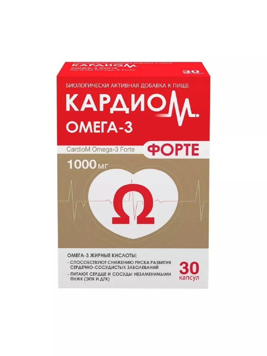 КАРДИОМ ОМЕГА-3 ФОРТЕ N30 КАПС ПО 1375МГКАРДИОМ ОМЕГА-3 ФОРТЕ - Биологически активная добавка (БАД) к пище - способствует здоровой работе сердца и снижению риска развития сердечно-сосудистых заболеванийБиологически активная добавка (БАД) к пище