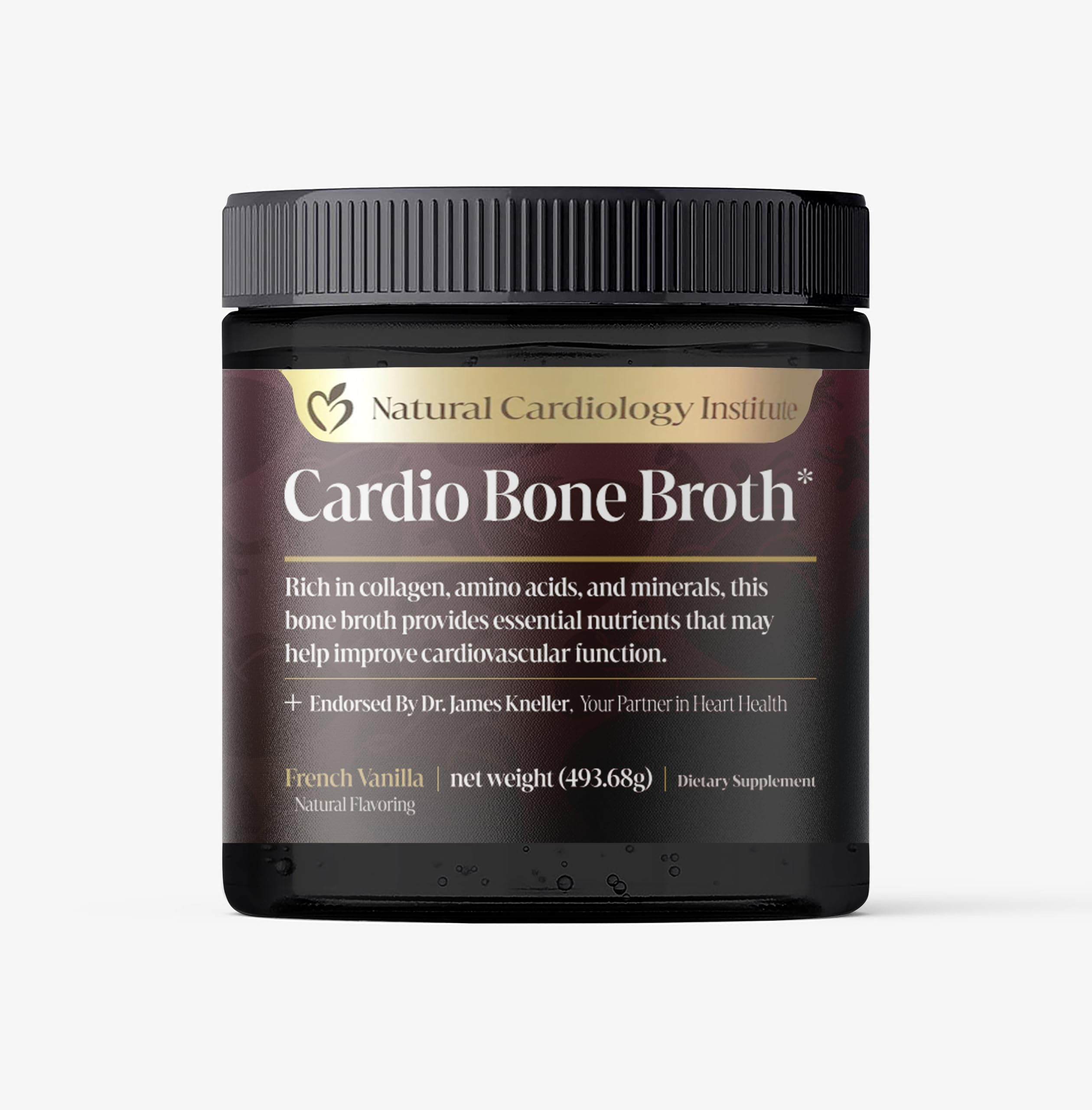 Cardio Bone Broth by Natural Cardiology Institute is a next-level, doctor-formulated bone broth supplement designed for heart health and overall wellness. Each serving delivers a powerful, science-backed combination of bone broth powder, collagen peptides, collagen, collagen protein, protein, glycine, multivitamin, vitamin d, vitamin k2, antioxidants, and peptides — all working synergistically to support heart health, healthy cholesterol levels, and vascular integrity. Our collagen peptides powder supports blood vessel repair, heart-muscle recovery, joint health, and gut integrity, while collagen protein powder and hydrolyzed collagen provide essential building blocks for maintaining elasticity and strength in the vascular system. Designed by integrative cardiology experts, Cardio Bone Broth promotes arterial flexibility, healthy blood flow, and long-term cardiovascular resilience with naturally derived, nutrient-dense ingredients. This premium bone broth protein powder also nourishes metabolic and digestive pathways, supporting energy metabolism and overall vitality. With a delicious French Vanilla flavor, it blends seamlessly into smoothies, coffee, water, plant milks, or breakfast bowls, making it an easy and convenient addition to your daily nutrition routine. Whether you are looking to support healthy cholesterol balance, improve vascular health, or add a nutrient-rich, heart-supportive supplement to your lifestyle, Cardio Bone Broth offers a comprehensive solution. With regular use, this bone broth, collagen peptides, and collagen protein blend helps you maintain long-term cardiovascular wellness, joint health, and overall vitality — naturally.NATURAL, HIGH-QUALITY INGREDIENTS – Crafted from beef broth, multi collagen peptides, this premium collagen bone broth protein supplements powder provides benefits in a nutrient-dense, holistic heart-supporting solution. Vanilla flavored collagen for women and men. VERSATILE EASY TO USE – Enjoy this French Vanilla bone broth protein powder as a convenient daily supplement that mixes effortlessly into smoothies, coffee, water, plant milks, or breakfast bowls. Recommended: one scoop 3–5 times weekly or half-scoop daily for consistent heart-healthy support. COLLAGEN ENERGY METABOLIC SUPPORT – Collagen peptides powder, collagen protein powder, hydrolyzed collagen, and grass fed gelatin support blood vessel repair, heart-muscle recovery, joint health, and gut integrity. Additional benefits include maintaining healthy energy metabolism and supporting overall vitality. SUPPORTS LDL, ARTERIES BLOOD FLOW – Our formula combines collagen protein, bone broth, and heart-supportive nutrients to promote vascular integrity, arterial elasticity, and optimal blood circulation, while supporting long-term cardiovascular resilience. HEART-SUPPORT FORMULA – Cardio Bone Broth by Natural Cardiology Institute delivers a premium blend of bone broth powder, collagen peptides, collagen powder, protein, multivitamin, vitamin d, vitamin k2, glycine, antioxidants, and peptides to support heart health, healthy cholesterol balance, and cardiovascular wellness.