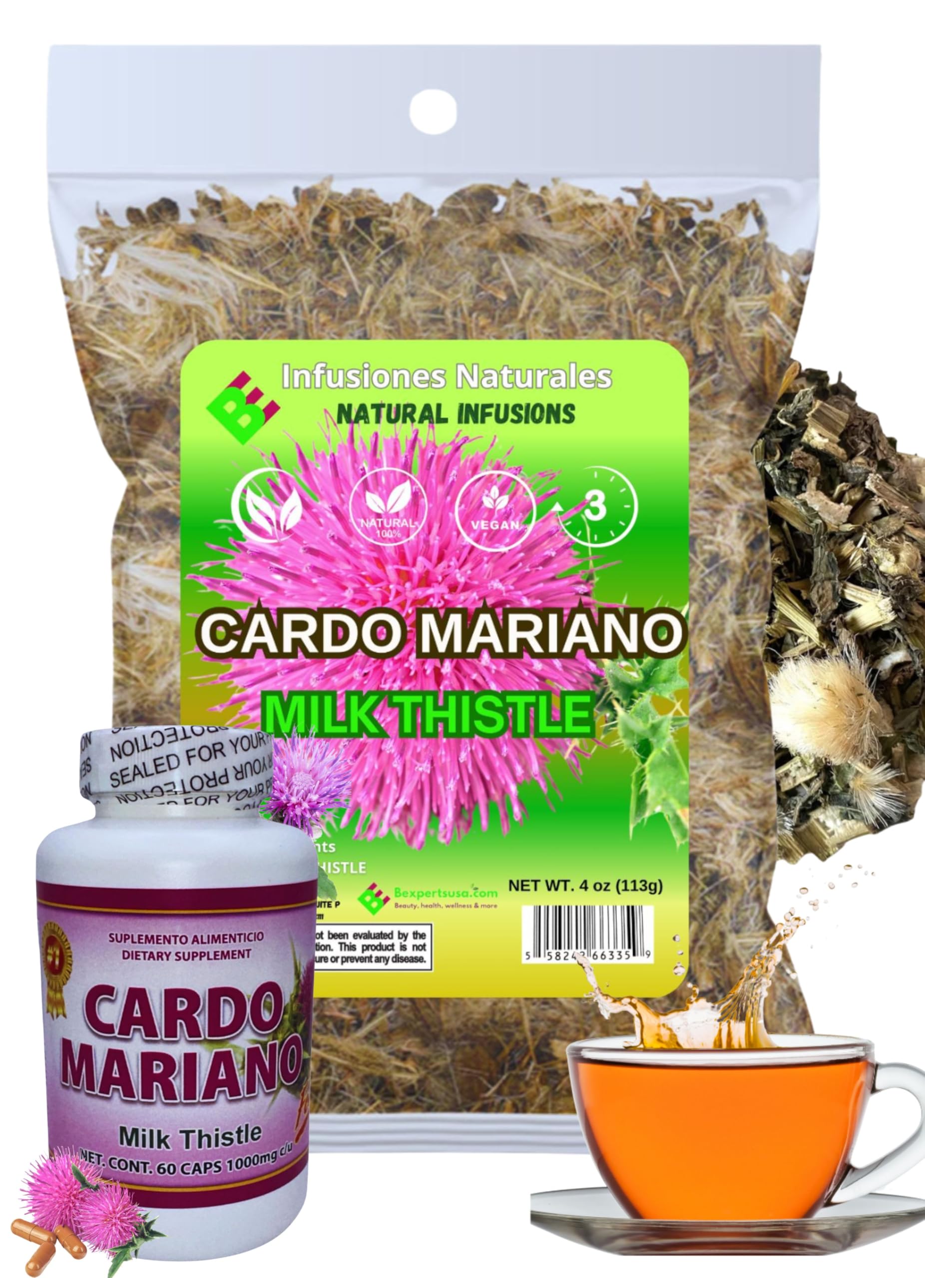 Cardo Mariano Herb Tea & Capsules | Vegan | 100% Pure & Natural Milk Thistle | Loose Tea 4oz (113g) + 60 Capsules (1000 mg Each) - Herbal Dietary Supplement | Extra Forte