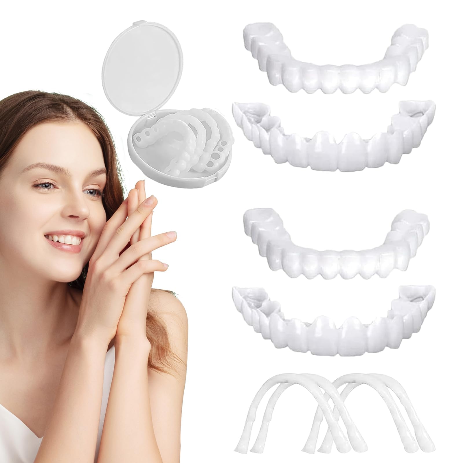 These non-toxic, reusable snap-on cosmetic veneers are a hassle-free and convenient solution for anyone looking to improve their smile. Made of high quality polypropylene and silicone, our clip-in veneer teeth are safe and reliable for everyday use. Our dentures have a non-concave design that ensures a seamless fit with your natural teeth, so you can smile with confidence. These false teeth are incredibly easy to use, hassle free and easy to clean. After use, they can be easily stored in the box provided - ready for their next use after a quick cleaning. With this premium instant denture and reveal a set of dazzling white teeth. Add a new shine to your smile today with our Premium Quality Instant Dentures! Product details Name: The immediate dental prosthesis Material: Polypropylene and silicone Quantity: 2 Pair Colour: White Friendly tips: Recently, the packaging of this product has been upgraded and a small tweezer has been added inside for your convenience. Feel free to use it, your satisfaction is our greatest pursuit.Effective Solution: These Fake Teeth Veneers effectively cover irregularities, stains, missing or incomplete teeth, giving you an instant set of bright white teeth. Wear the Fake Teeth Veneers with confidence for a seductive, radiant smile. Easy to use: Simply soak the included adhesive strip of clip in veneer teeth in hot water to dissolve and soften it, place it in the denture, place the denture over your teeth and finally adjust it to your comfort position. Experience a hassle-free way to improve your smile. Sophisticated Design: Our temporary snap-on veneers, with their non-concave design, are carefully crafted to snugly match your natural teeth. The snap-on veneer teeth have a texture and shine that mirror real teeth and provide a natural and invisible appearance for an instant bright and sweet smile. Complete Package: This Instant perfect smile veneer includes 2 pairs of top and bottom dentures, along with 4 pieces of adhesive strip, all safely packed in a reusable OPP packaging box. This Instant perfect smile veneer is designed to meet your daily needs and provide replacement options when necessary. High Quality Materials: Our cosmetic veneer teeth are made of high quality polypropylene and silicone, making them non-toxic, tasteless and safe for daily use. You can confidently wear the cosmetic veneer teeth and show off your new smile.2 Paar Onmiddellijke Tandprothesen Natuurlijke Valse Tanden, Instant Whitening Smile Veneers Tanden, Cosmetische Fineer tanden Perfecte Glimlach Kunstgebitten Bedekt Ontbrekende Tanden Deze niet-giftige, herbruikbare snap-on cosmetische veneers zijn een probleemloze en handige oplossing voor iedereen die zijn glimlach wil verbeteren. Gemaakt van hoogwaardig polypropyleen en siliconen, zijn onze clip-in fineertanden veilig en betrouwbaar voor dagelijks gebruik. Ons kunstgebit heeft een niet-hol ontwerp dat een naadloze aansluiting op uw natuurlijke tanden garandeert, zodat u met vertrouwen kunt glimlachen. Deze valse tanden zijn ongelooflijk gemakkelijk te gebruiken, probleemloos en eenvoudig schoon te maken. Na gebruik kunnen ze gemakkelijk worden opgeborgen in de meegeleverde doos - klaar voor hun volgende gebruik na een snelle reiniging. Met deze premium instant prothese en onthulling een set oogverblindende witte tanden. Voeg vandaag nog een nieuwe glans toe aan uw glimlach met onze Premium Quality Instant Prothesen! Productdetails Naam: De onmiddellijke tandprothese Materiaal: Polypropyleen en siliconen Aantal: 2 Paar Kleur: Wit Vriendelijke tips: Onlangs is de verpakking van dit product geüpgraded en voor uw gemak is er een klein pincet aan de binnenkant toegevoegd. Voel je vrij om het te gebruiken, je tevredenheid is ons grootste streven.Effectieve oplossing: Deze neptanden Veneers bedekken effectief onregelmatigheden, vlekken, ontbrekende of onvolledige tanden, waardoor u onmiddellijk een set helderwitte tanden krijgt. Draag de neptanden Veneers met vertrouwen voor een verleidelijke, stralende glimlach. Gebruiksvriendelijk: Week gewoon de meegeleverde plakstrip van clip in fineer tanden in heet water om deze op te lossen en te verzachten, plaats deze in het kunstgebit, plaats de prothese over uw tanden en pas deze ten slotte aan uw comfortpositie aan. Ervaar een probleemloze manier om uw glimlach te verbeteren. Verfijnd ontwerp: Onze tijdelijke snap-on fineren, met hun niet-holle ontwerp, zijn zorgvuldig vervaardigd om goed bij uw natuurlijke tanden te passen. De snap-on fineertanden hebben een textuur en glans die echte tanden weerspiegelen en zorgen voor een natuurlijk en onzichtbaar uiterlijk voor een onmiddellijke heldere en lieve glimlach. Compleet pakket: Deze Instant perfect smile fineer bevat 2 paar kunstgebit aan de boven en onderkant, samen met 4 stuks plakstrip, allemaal veilig verpakt in een herbruikbare OPP-verpakkingsdoos. Dit Instant perfect smile fineer is ontworpen om aan uw dagelijkse behoeften te voldoen en indien nodig vervangingsopties te bieden. Hoogwaardige materialen: Onze cosmetische fineertanden zijn gemaakt van hoogwaardig polypropyleen en siliconen, waardoor ze niet giftig, smaakloos en veilig zijn voor dagelijks gebruik. U kunt vol vertrouwen de cosmetische fineertanden dragen en uw nieuwe glimlach laten zien.