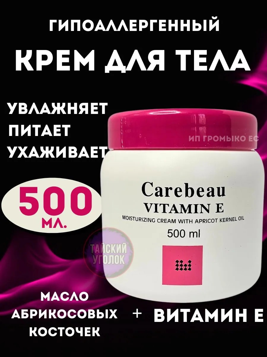 Мега увлажнение в большой банке! Мягкость и упругость вашей кожи, крем для тела Carebeau с экстрактом из абрикосовых косточек и токоферолом, 500 мл. Розовый крем обладает легким светочным ароматом. Консистенция средней плотности, быстро впитывается без липкого слоя.