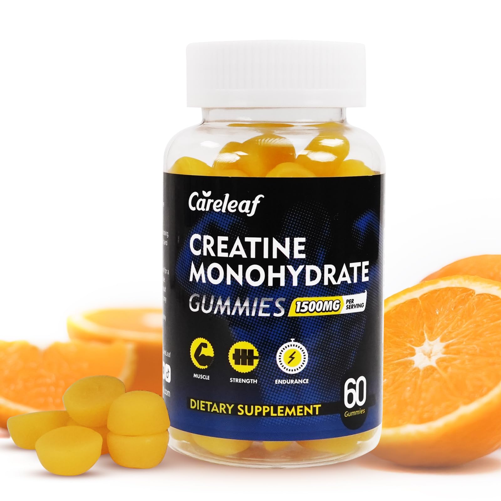 careleaf Creatine Monohydrate Gummies for Men & Women 1500mg Creatine Supplement for Muscle Gain More Strength and Faster Recovery Orange Flavor 60 Cts/Bottle