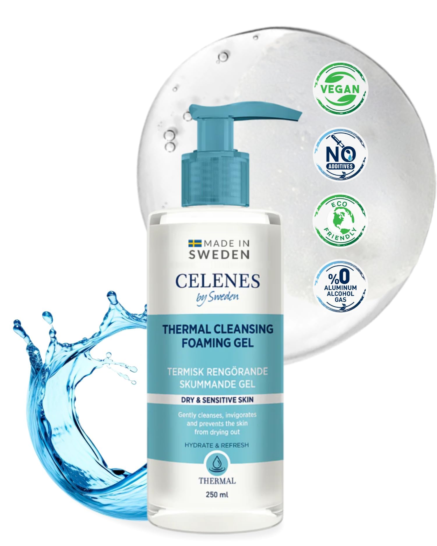 The product is developed with thermal water and herbal extracts for dry sensitive skin types to cleanse and hydrate the skin. It soothes the skin with chamomile and camellia extracts. With cucumber extract and mineral-rich content, it helps prevent stretch marks and provides daily skin care. Paraben and alcohol free. The product is for external use only. Avoid eye contact. If the product comes into contact with your eyes, rinse them with plenty of water. Keep out of reach of children. Store the product at room temperature. Apply to damp skin, massage and rinse gently with water. INGREDIENTS AQUA,SODIUM LAUROYL METHYL ISETHIONATE, SODIUM COCOAMPHOACETATE, GLYCERIN, COCO GLUCOSIDE, GLYCERYL OLEATE, STEARETH-100 PEG-136 HDI COPOLYMER, PROPANEDIOL, PHENETHYL ALCOHOL, UNDECYL ALCOHOL,TOCOPHEROL, ANHYDROXYLITOL, XYLITOL,HEXYLENE GLYCOL, CAPRYLOYL GLYCINE, EDTA. INSTRUCTIONS FOR USE Natural herbal extracts facial gel See moreCommitment to Purity and Safety: Celenes Thermal Cleansing Foaming Gel is free from harmful additives such as parabens, alcohol, perfume, and mineral oil, providing safe, non-irritating care even for the most sensitive skin types. Through the careful selection of ingredients, we guarantee a gentle, yet effective cleansing that supports the health and beauty of your skin. Optimized Hydration through Mineral Enrichment: Our advanced formula meets the skin's moisture needs through a rich mineral structure that provides deep hydration and long-lasting nourishment, leaving the skin soft, supple and vital. Youthfulness and Elasticity: Discover the power of cucumber and lemon extracts combined with a wealth of essential minerals. These ingredients work synergistically to improve skin elasticity, reduce fine lines and promote a firmer, more youthful appearance. Superior Skin Care with Natural Extracts: Enriched with chamomile and camellia extracts, known for their soothing and restorative properties, this formula provides a soothing sensation, reduces skin irritations and promotes an even, radiant complexion. Luxurious Cleansing and Intense Hydration: Experience the ultimate balance between deep cleansing and intensive hydration. Our Thermal Cleansing Foaming Gel has been carefully formulated to remove make-up and impurities without stripping the skin's natural moisture barrier, leaving an impeccably clean, fresh and richly hydrated feeling.Celenes by Sweden Thermische Reinigende Schuimgel - Parabeen- Alcoholvrij, Verrijkt met Natuurlijke Kruidenextracten, Ideaal voor Droge Gevoelige Huid - 250ml Het product is ontwikkeld met thermaal water en kruidenextracten voor droge gevoelige huidtypes om de huid te reinigen en te hydrateren. Het kalmeert de huid met kamille- en camelia-extracten. Met komkommerextract en mineraalrijk gehalte helpt het striae te voorkomen en zorgt het voor dagelijkse huidverzorging. Parabenen en alcoholvrij. Het product is alleen voor uitwendig gebruik. Vermijd oogcontact. Als het product in contact komt met uw ogen, spoel ze dan met veel water. Buiten bereik van kinderen houden. Bewaar het product op kamertemperatuur. Aanbrengen op een vochtige huid, inmasseren en voorzichtig afspoelen met water. INGREDIËNTEN AQUA,SODIUM LAUROYL METHYL ISETHIONATE, SODIUM COCOAMPHOACETATE, GLYCERIN, COCO GLUCOSIDE, GLYCERYL OLEATE, STEARETH-100 PEG-136 HDI COPOLYMER, PROPANEDIOL, PHENETHYL ALCOHOL, UNDECYL ALCOHOL,TOCOPHEROL, ANHYDROXYLITOL, XYLITOL,HEXYLENE GLYCOL, CAPRYLOYL GLYCINE, XYLITYLGLUCOSIDE, MAGNESIUM ASPARTATE, ZINC GLUCONATE, COPPER GLUCONATE,CUCUMIS SATIVUS SEED EXTRACT, CHAMOMILLA RECUTITA FLOWER EXTRACT, CAMELLIA SINENSIS LEAF EXTRACT,CITRIC ACID, DISODIUM EDTA. GEBRUIKSAANWIJZING Natuurlijke kruidenextracten gezichtsgel Meer bekijkenToewijding aan Zuiverheid en Veiligheid: Celenes Thermal Cleansing Foaming Gel is vrij van schadelijke toevoegingen zoals parabenen, alcohol, parfum, en minerale olie, wat zorgt voor een veilige, niet-irriterende verzorging, zelfs voor de meest gevoelige huidtypen. Door de zorgvuldige selectie van ingrediënten garanderen we een zachte, maar effectieve reiniging die de gezondheid en schoonheid van uw huid ondersteunt. Geoptimaliseerde Hydratatie door Minerale Verrijking: Onze geavanceerde formule voldoet aan de vochtbehoefte van de huid door een rijke minerale structuur die diepe hydratatie en langdurige voeding biedt, waardoor de huid zacht, soepel en vitaal blijft. Jeugdigheid en Elasticiteit: Ontdek de kracht van komkommer- en citroenextracten gecombineerd met een rijkdom aan essentiële mineralen. Deze ingrediënten werken synergetisch om de elasticiteit van de huid te verbeteren, fijne lijntjes te verminderen en een stevigere, jeugdigere uitstraling te bevorderen. Superieure Huidverzorging met Natuurlijke Extracten: Verrijkt met kamille- en camelia-extracten, bekend om hun verzachtende en herstellende eigenschappen, biedt deze formule een kalmerende sensatie, vermindert huidirritaties en bevordert een egale, stralende teint. Luxueuze Reiniging en Intense Hydratatie: Ervaar de ultieme balans tussen diepe reiniging en intensieve hydratatie. Onze Thermal Cleansing Foaming Gel is zorgvuldig ontwikkeld om make-up en onzuiverheden te verwijderen zonder de natuurlijke vochtbarrière van de huid aan te tasten, waardoor een onberispelijk schoon, fris en rijkelijk gehydrateerd gevoel achterblijft.