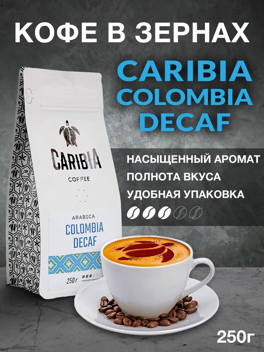 Caribia Кофе без кофеина Декаф в зернах 250 г Колумбия Decaf