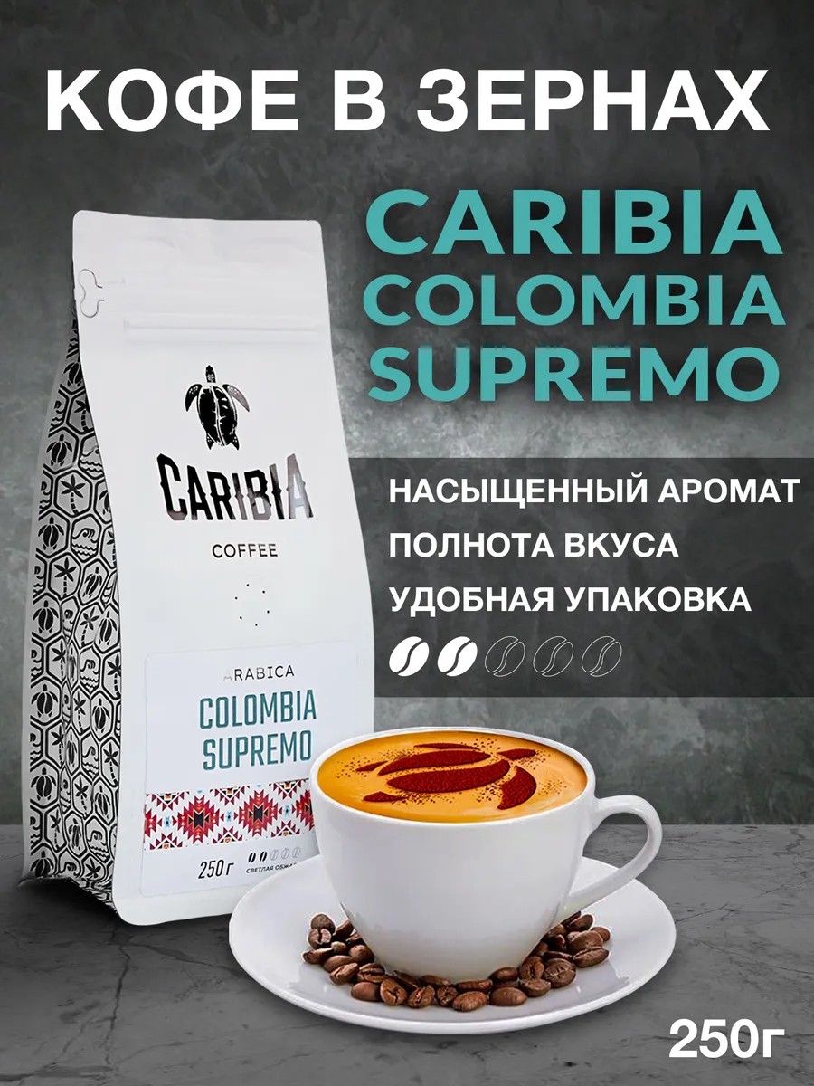 Caribia Кофе в зернах 250г Colombia Supremo Арабика 100%