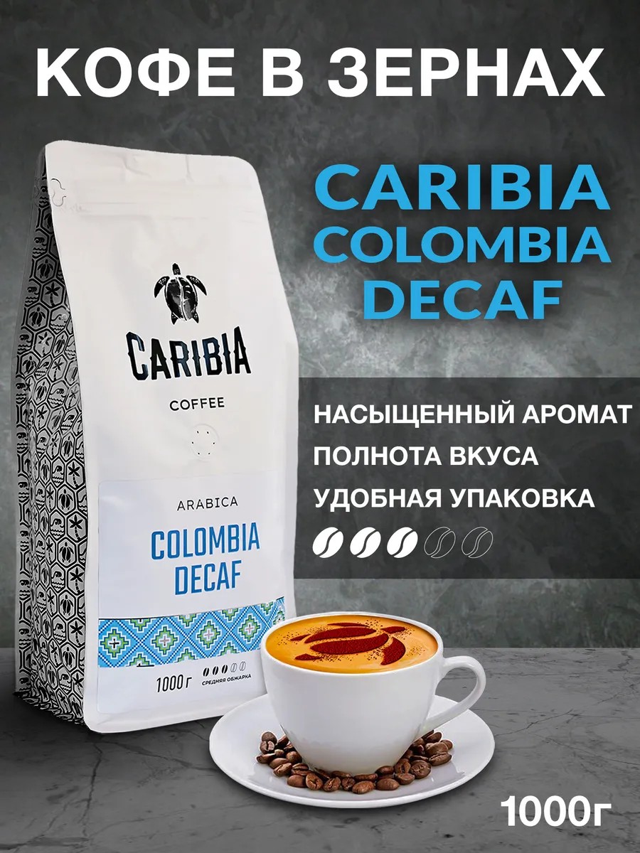 Caribia Кофе без кофеина Декаф в зернах 1 кг Колумбия Decaf