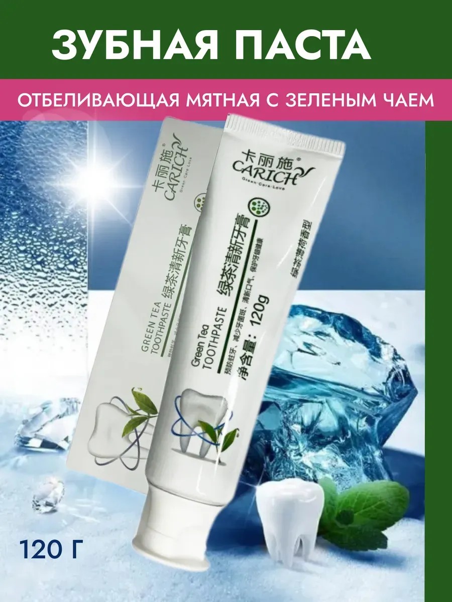 «CARICH» - натуральная освежающая зубная паста с зеленым чаем и мятой. Прекрасно очищает полость рта, обеспечивая свежее дыхание на весь день, защищает зубы от разрушения. Благодаря фтору, входящему в состав, вы можете быть уверены в защите от кариеса и укреплении эмали.