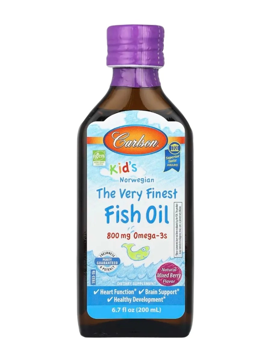 Детский норвежский рыбий жир, жидкая омега-3 для детей, с натуральным ягодным вкусом, 800мг, 200 мл. Отсутствие ГМО в составе подтверждено сертификатом IGEN – Non-GMO Tested. 800 мг омега-3 кислот. Награда «Superior Taste Award». Гарантия свежести, эффективности и чистоты. Поддержка работы сердца. Поддержка работы мозга. Здоровое развитие. Не содержит глютена. Без искусственных консервантов. Сертификат качества IFOS.Компания Carlson производит лучшие в Норвегии препараты, содержащие омега-3, с 1982 года. Состав: норвежский рыбий жир, витамин E (в виде d-альфа-токоферола), натуральные ароматизаторы, содержит 0,5% следующих ингредиентов: смесь антиоксидантов (натуральные смешанные токоферолы, экстракт розмарина). Содержит рыбу (анчоусы, сардина, макрель) Рекомендации по применению: детям от 1 года: принимать по 1/2 ч. л. один или два раза в день во время еды. Перед тем, как давать продукт детям до 1 года, проконсультируйтесь с педиатром. После вскрытия упаковки продукт следует хранить в холодильнике и употребить в течение 100 дней. Этот продукт регулярно проходит проверки в независимых лабораториях, зарегистрированных Управлением по контролю качества пищевых продуктов и лекарственных препаратов США (FDA). Гарантируется свежесть и максимальная эффективность (согласно международным протоколам AOCS), а также отсутствие вредных концентраций ртути, кадмия, свинца, ПХБ и 28 других загрязняющих веществ гарантированы.