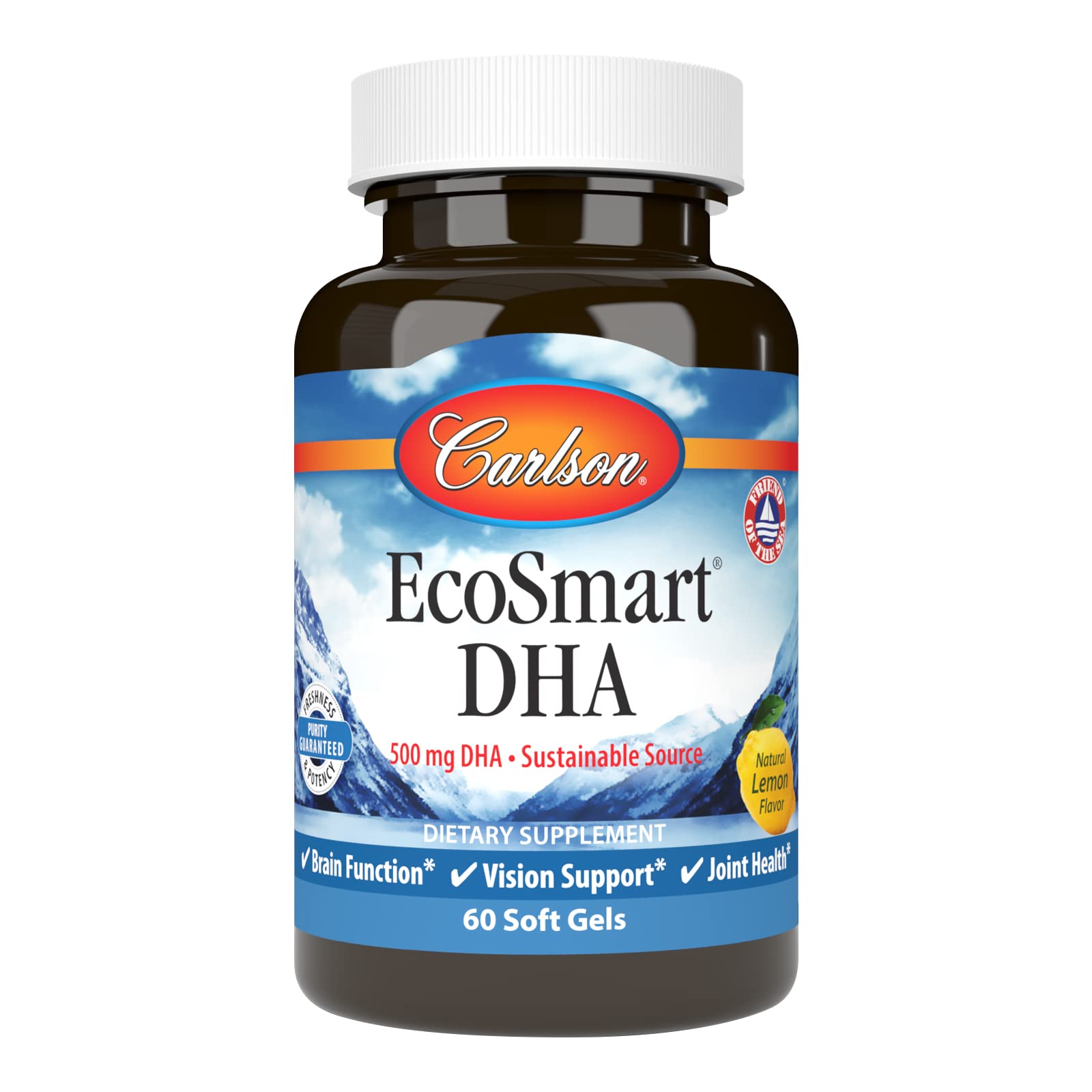 Carlson - EcoSmart DHA 500 Sustainable Source Supports Healthy Vision & Brain Function Lemon 60 soft gels