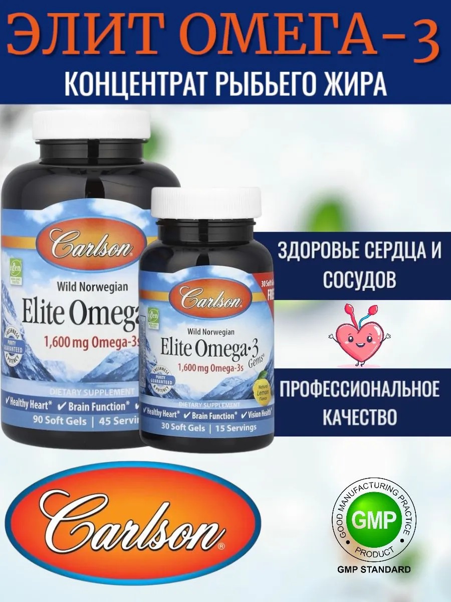 Carlson Elite Omega-3 Gems – это высококачественная добавка, содержащая омега-3 жирные кислоты, полученные из свежей рыбы. Каждая капсула содержит 1600 мг омега-3, включая EPA (эйкозапентаеновую кислоту) и DHA (докозагексаеновую кислоту), которые играют важную роль в поддержании здоровья сердца, мозга и суставов.