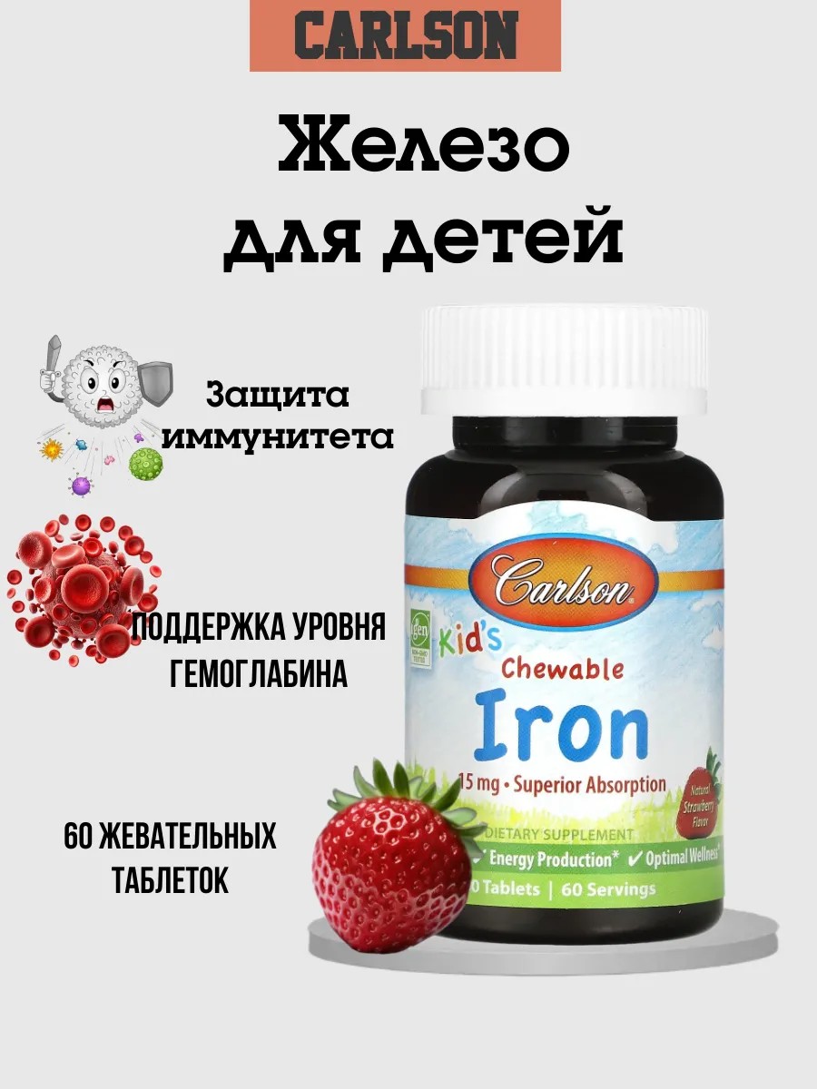 Железо для детей от Carlson - помогает поддерживать здоровье детей, особенно в период активного роста. Этот продукт способствует нормализации уровня гемоглобина, что особенно важно для профилактики анемии. Железо играет ключевую роль в формировании и поддержании иммунитета, что помогает организму лучше справляться с инфекциями. Удобная форма в виде жевательных таблеток делает его прием приятным и простым, что особенно важно для капризных детей. Заботьтесь о здоровье своих детей, обеспечивая их необходимыми веществами для полноценного развития.