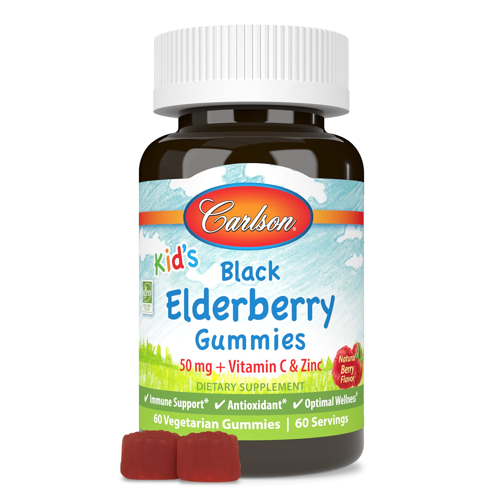 Carlson - Kid's Black Elderberry Gummies. with Vitamin C & Zinc Immune Support 60 Gummies