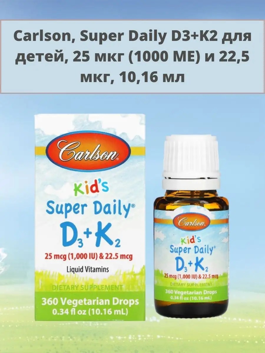 Carlson Labs D3+K2 для детей, 1000 МЕ 10,16 мл