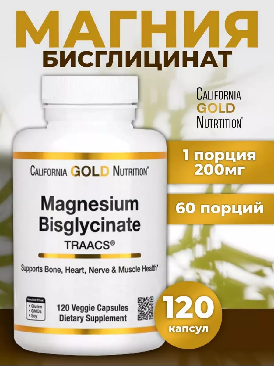 Магний является незаменимым минералом и играет важную роль в поддержании вашего здоровья. California Gold Nutrition Бисглицинат магния содержит особую форму магния, известную как хелат бисглицината магния, которая хорошо усваивается и поддерживает здоровье костей, сердца, нервов и мышц.Преимущества магния: Магний играет множество важнейших ролей в организме, поскольку он отвечает за более чем 300 различных биохимических реакций. Помогает поддерживать развитие костей, функцию мышц и нервов, сердечно-сосудистую систему и многое другое. Некоторые формы магния, такие как бисглицинат магния, могут помочь организму более эффективно, чем другие, благодаря своей биодоступности. Исследования показывают, что по сравнению с другими формами хелат бисглицината магния усваивается в четыре раза лучше, чем оксид магния.Бисглицинат магния California Gold Nutrition содержит высокоусвояемую форму магния, изготовленную с использованием TRAACS. Этот фирменный ингредиент, который расшифровывается как “Настоящая хелатная система аминокислот", был создан Albion Laboratories и подтвержден рядом патентов и опубликованных научных исследований. Взрослым по 2 капсулы в день вне зависимости от приема пищи. Продолжительность приема: 1 месяц. При необходимости можно повторить.