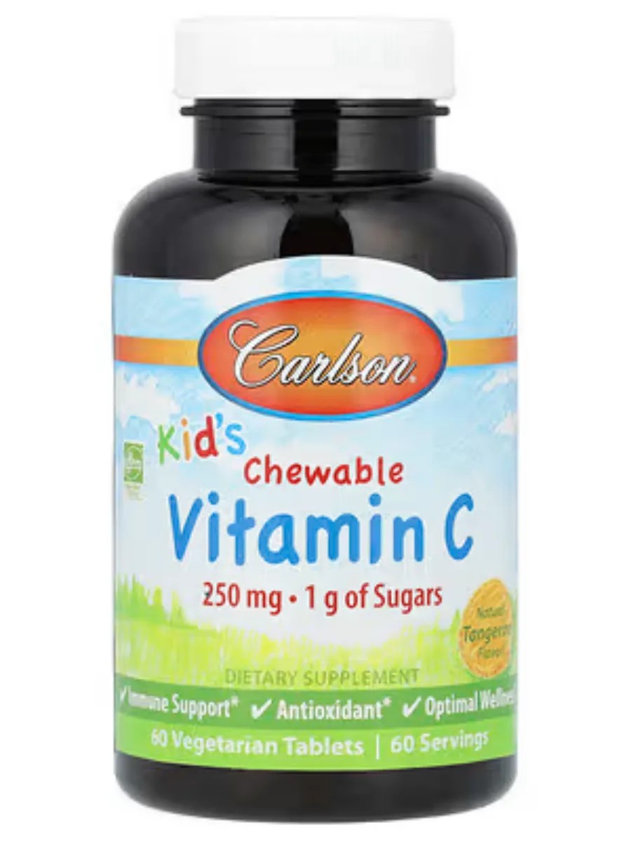 Детский жевательный витамин C — это быстрый и простой способ поддерживать здоровье иммунной системы наших детей. Каждая вегетарианская таблетка со вкусом мандарина содержит 250 мг витамина C и оказывает мягкое воздействие на зубы и желудок.
