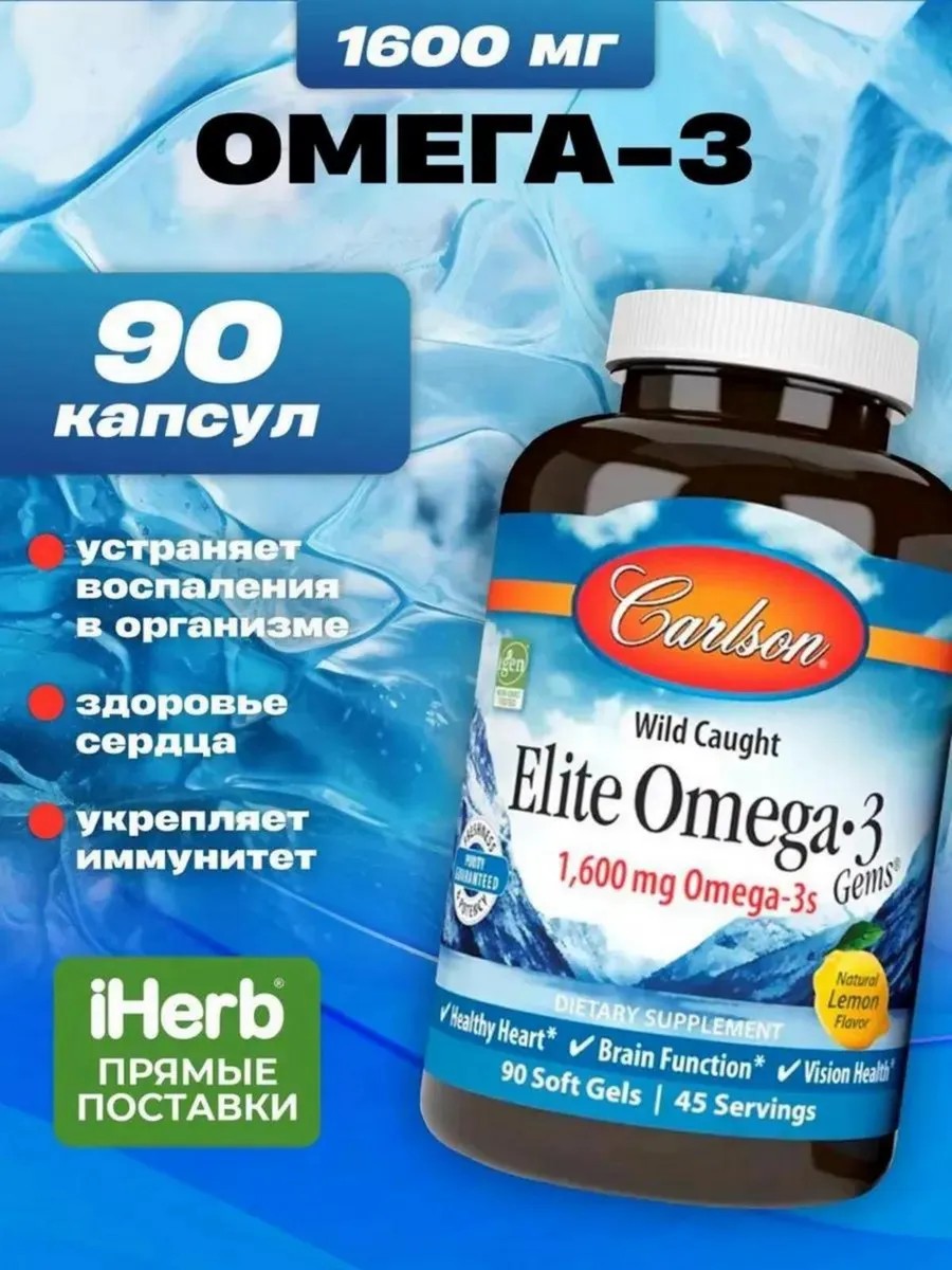 Carlson Labs Витамины Elite омега 3 1600 mg 90 капсул
