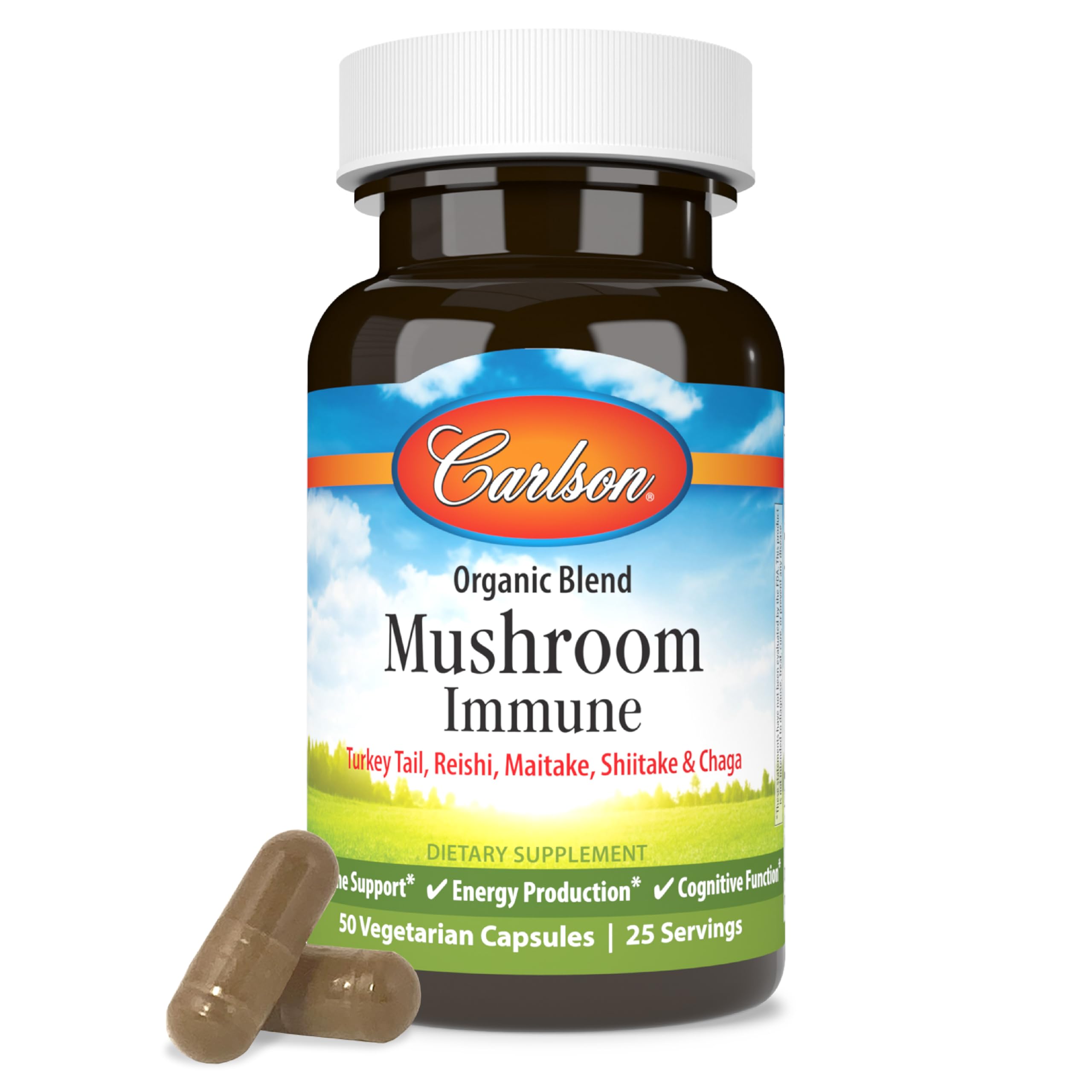 Carlson - Mushroom Complex Organic Blend with Turkey Tail Reishi Maitake Shiitake Chaga Non-GMO 50 Vegetarian Capsules 50 Count (Pack of 1)