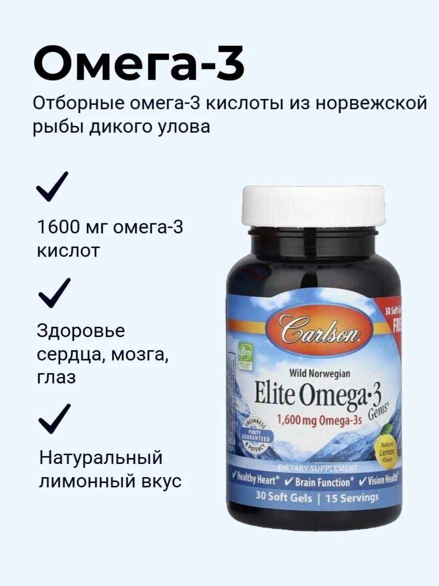Carlson Омега-3, Elite Omega-3, 30 капсул