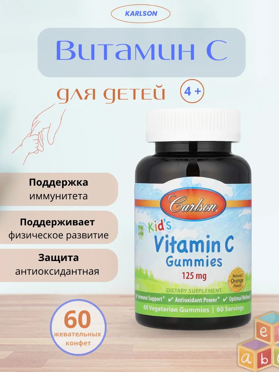 Carlson, Детский, жевательные конфеты с витамином С, натуральный апельсин, 125 мг, 60 вегетарианских жевательных конфет— это забота о здоровье и росте вашего ребенка. Разработаны, чтобы поддержать иммунитет и способствовать физическому развитию, особенно в период активного роста. Пищевая добавка укрепляют защитные функции организма, что особенно важно в сезон простуд и вирусов.