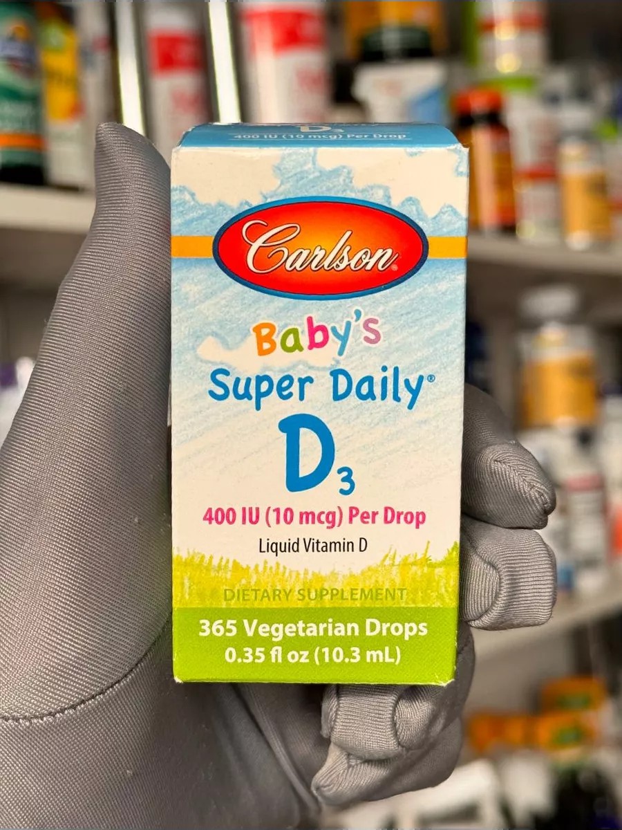 ВитаминD3 играет важную роль для здоровья в целом.Однако для его выработки необходим солнечный свет, который не все получают в достаточном количестве. ВитаминD3 для детей Super Daily от Carlson предлагает безопасный и удобный способ получения витаминаD3. Одна капля витаминаD3 для детей Super Daily от Carlson содержит 400МЕ (10мкг) концентрированного жидкого витаминаD3— рекомендуемую дозу Американской академии педиатрии.