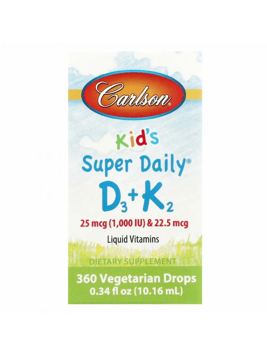 Carlson Витамины D3+K2 kids, 25 мкг (1000 МЕ) и 22,5 мкг, 10,16 мл