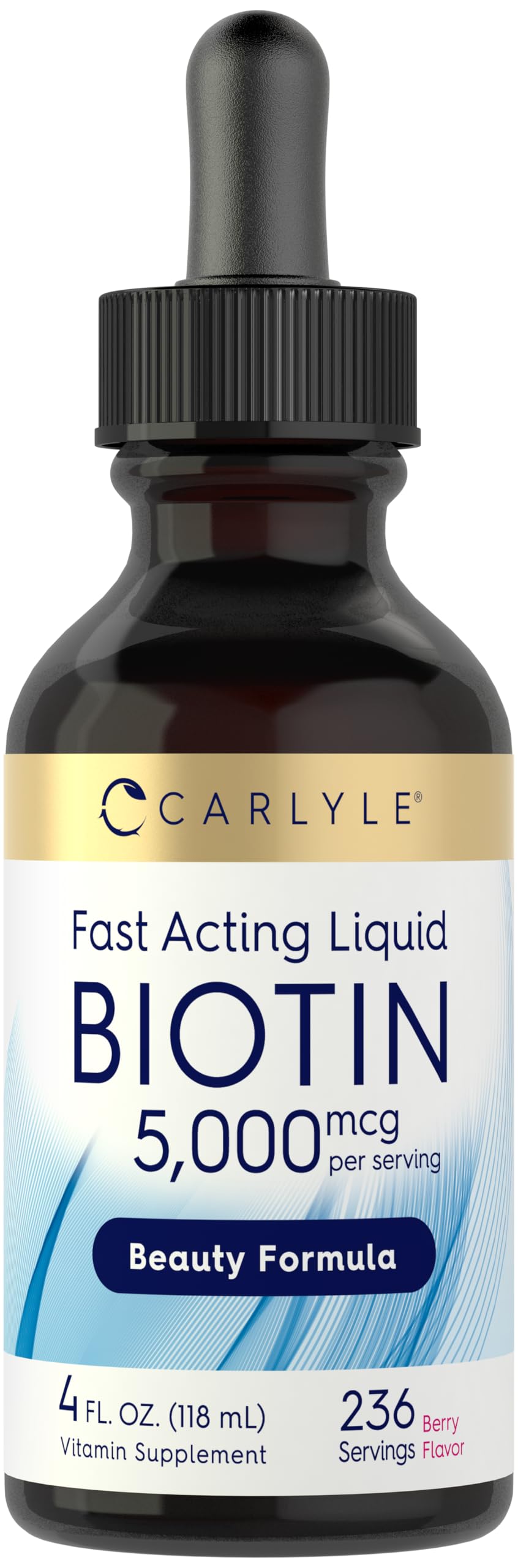 Carlyle Biotin 5000mcg Liquid Drops | 4 fl oz | for Women and Men | Berry Flavor | Beauty Formula | Vegetarian Non-GMO & Gluten Free Supplement