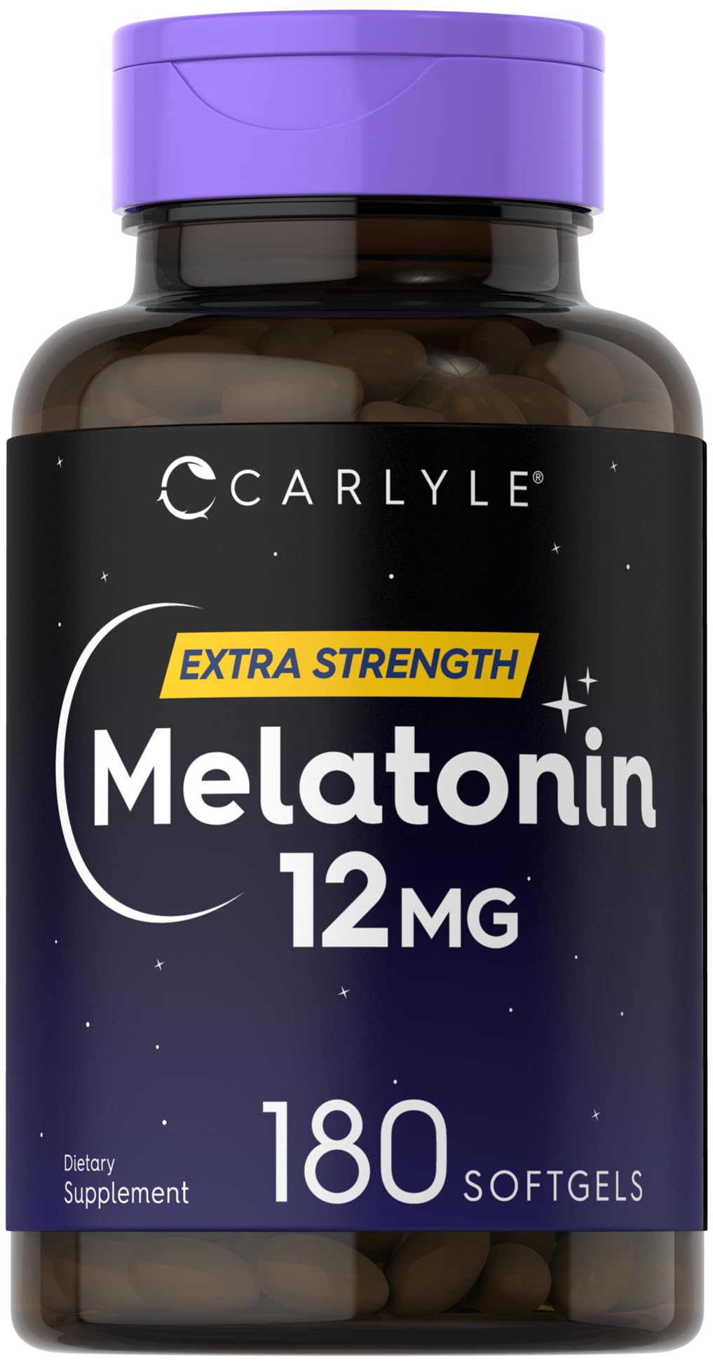Carlyle Melatonin 12 mg | 180 Softgel Capsules | Adult Extra Strength Support Supplement | Non-GMO Gluten Free