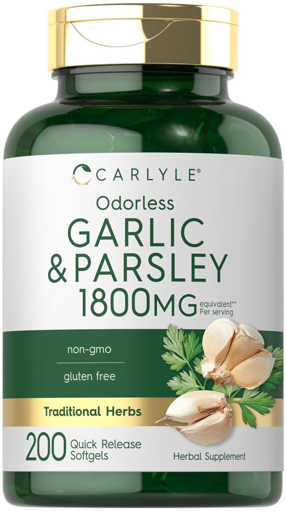 Carlyle Odorless Garlic & Parsley | 200 Softgels | Non-GMO Gluten Free Supplement 200 Count (Pack of 1)