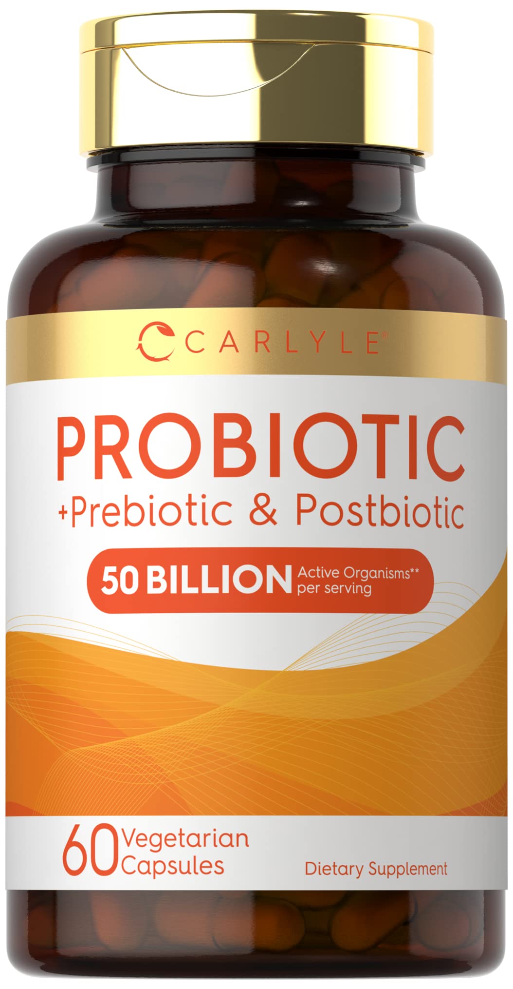 NATURALLY FREE OF: Gluten, Wheat, Soy, Artificial Color, Flavor, Sweetener, Preservatives Non-GMO. CARLYLE MANUFACTURERS: Laboratory Tested, Trusted Ingredients, Superior Quality, 100 Guaranteed!. ROOTED IN WELLNESS: Carlyle provides premium, honest supplements in your pursuit to healthy living. CONVENIENT FORM: Vegetarian capsules make it an easy addition to your daily routine. TRIPLE ACTION: Probiotic Prebiotic Postbiotic features 50 Billion Active Organisms per serving .