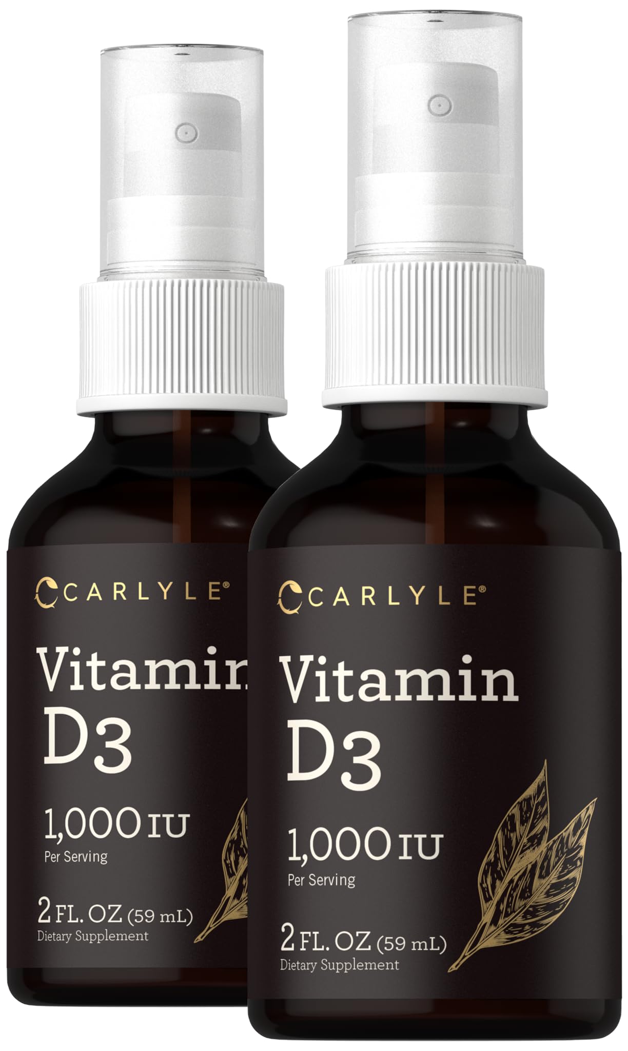 Carlyle Vitamin D3 1000IU Liquid Spray | 4 FL Oz (2 x 2 fl oz) | 2 Pack | Vegetarian Non-GMO Gluten Free Supplement