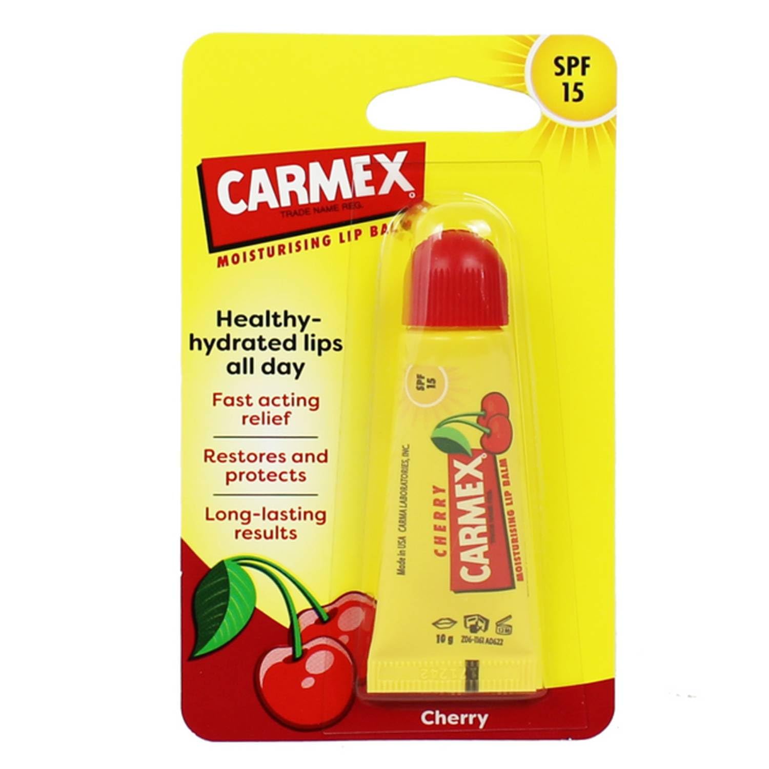 Carmex Lip Balm is the perfect solution for caring for dry and dehydrated lips, with a wide range of irresistible flavors and scents. Each version is formulated to provide intense and long-lasting hydration, while protecting lips from the elements with premium ingredients such as menthol and cocoa butter. The various flavors and scents, from fresh and fruity to sweet and comforting, offer a unique sensory experience, making every application a moment of pleasure. Whether you prefer the freshness of cherry, the sweet taste of cherry, or the exotic fragrance of watermelon, Carmex offers a choice to suit every taste, for lips that are always soft, smooth, and protected. SAFETY WARNING For external use onlyWhether you prefer the freshness of cherry, the sweet taste of cherry, or the exotic fragrance of watermelon, Carmex offers a choice to suit every taste, for lips that are always soft, smooth, and protected. The different flavors and aromas, ranging from fresh and fruity to sweet and comforting, offer a unique sensory experience, making each application a moment of pleasure. Each version is formulated to provide intense and long-lasting hydration, while protecting lips from the elements with premium ingredients such as menthol and cocoa butter. Carmex Lip Balm is the perfect solution for caring for dry and dehydrated lips, with a wide range of irresistible scents and flavors.Carmex Cerise Baume Lèvres Hydratant Spf 15 1 UnitéDESCRIPTION DU PRODUIT DESCRIPTION DU PRODUIT Carmex Baume à lèvres est la solution parfaite pour prendre soin des lèvres sèches et déshydratées, avec une large gamme de variantes aux parfums et goûts irrésistibles. Chaque version est formulée pour offrir une hydratation intense et durable, tout en protégeant les lèvres des intempéries grâce à des ingrédients de qualité supérieure tels que le menthol et le beurre de cacao. Les différentes variantes de goût et de parfum, allant du frais et fruité au doux et enveloppant, offrent une expérience sensorielle unique, rendant chaque application un moment de plaisir. Que vous préfériez la fraîcheur de la cerise, la saveur douce de la cerise ou le parfum exotique à la pastèque, Carmex offre un choix adapté à tous les goûts, pour des lèvres toujours douces, lisses et protégées. AVERTISSEMENT DE SÉCURITÉ Usage extérieur uniquementQue vous préfériez la fraîcheur de la cerise, la saveur douce de la cerise ou le parfum exotique à la pastèque, Carmex offre un choix adapté à tous les goûts, pour des lèvres toujours douces, lisses et protégées. Les différentes variantes de goût et de parfum, allant du frais et fruité au doux et enveloppant, offrent une expérience sensorielle unique, rendant chaque application un moment de plaisir. Chaque version est formulée pour offrir une hydratation intense et durable, tout en protégeant les lèvres des intempéries grâce à des ingrédients de qualité supérieure tels que le menthol et le beurre de cacao. Carmex Baume à lèvres est la solution parfaite pour prendre soin des lèvres sèches et déshydratées, avec une large gamme de variantes aux parfums et goûts irrésistibles.