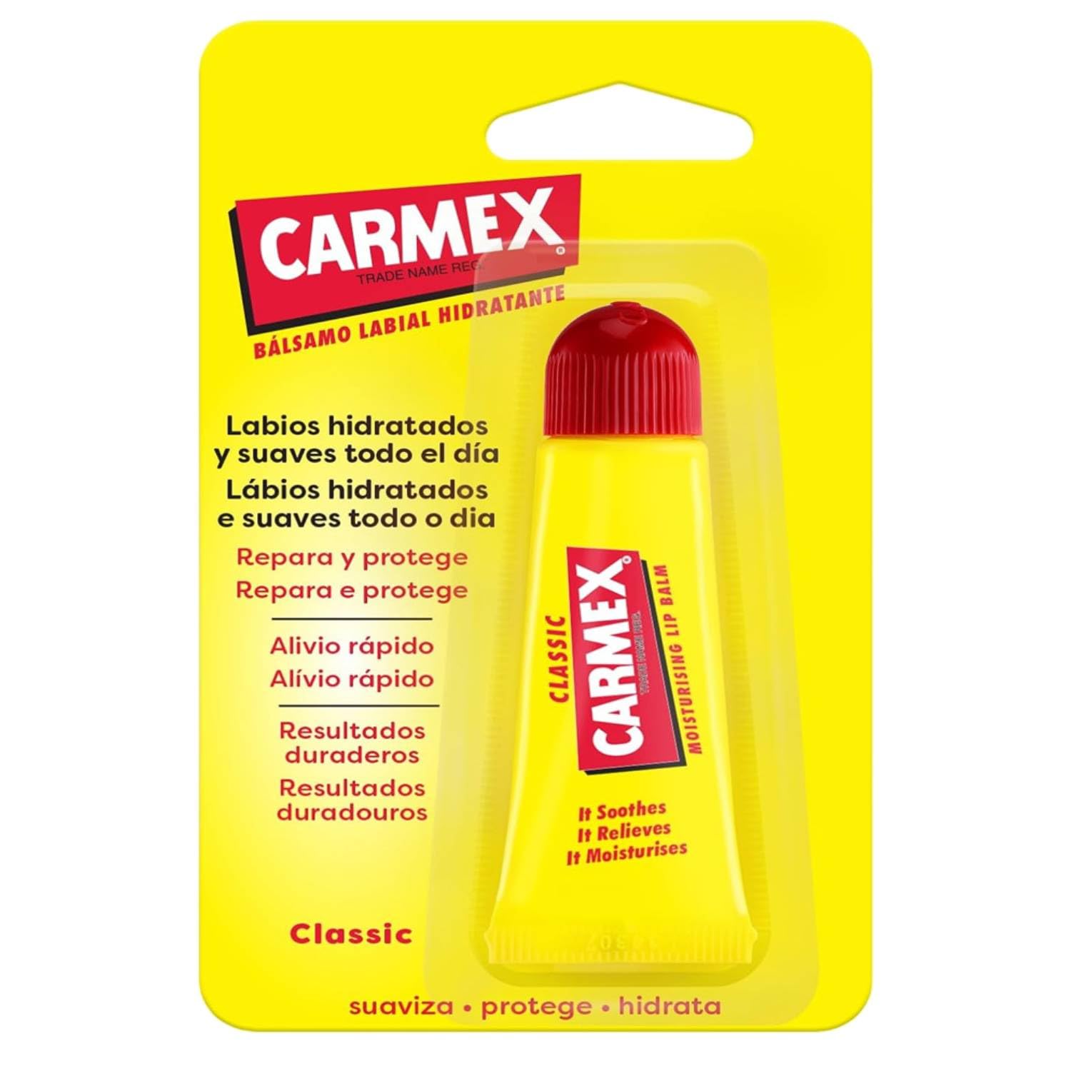 Carmex Lip Balm is the perfect solution for caring for dry and dehydrated lips, with a wide range of irresistible flavors and scents. Each version is formulated to provide intense and long-lasting hydration, while protecting lips from the elements with premium ingredients such as menthol and cocoa butter. The various flavors and scents, from fresh and fruity to sweet and comforting, offer a unique sensory experience, making every application a moment of pleasure. Whether you prefer the freshness of cherry, the sweet taste of cherry, or the exotic fragrance of watermelon, Carmex offers a choice to suit every taste, for lips that are always soft, smooth, and protected. SAFETY WARNING For external use onlyWhether you prefer the freshness of cherry, the sweet taste of cherry, or the exotic fragrance of watermelon, Carmex offers a choice to suit every taste, for lips that are always soft, smooth, and protected. The different flavors and aromas, ranging from fresh and fruity to sweet and comforting, offer a unique sensory experience, making each application a moment of pleasure. Each version is formulated to provide intense and long-lasting hydration, while protecting lips from the elements with premium ingredients such as menthol and cocoa butter. Carmex Lip Balm is the perfect solution for caring for dry and dehydrated lips, with a wide range of irresistible scents and flavors.Carmex Classique Baume Lèvres Hydratant Tube 10 Gr 1 UnitéDESCRIPTION DU PRODUIT DESCRIPTION DU PRODUIT Carmex Baume à lèvres est la solution parfaite pour prendre soin des lèvres sèches et déshydratées, avec une large gamme de variantes aux parfums et goûts irrésistibles. Chaque version est formulée pour offrir une hydratation intense et durable, tout en protégeant les lèvres des intempéries grâce à des ingrédients de qualité supérieure tels que le menthol et le beurre de cacao. Les différentes variantes de goût et de parfum, allant du frais et fruité au doux et enveloppant, offrent une expérience sensorielle unique, rendant chaque application un moment de plaisir. Que vous préfériez la fraîcheur de la cerise, la saveur douce de la cerise ou le parfum exotique à la pastèque, Carmex offre un choix adapté à tous les goûts, pour des lèvres toujours douces, lisses et protégées. AVERTISSEMENT DE SÉCURITÉ Usage extérieur uniquementQue vous préfériez la fraîcheur de la cerise, la saveur douce de la cerise ou le parfum exotique à la pastèque, Carmex offre un choix adapté à tous les goûts, pour des lèvres toujours douces, lisses et protégées. Les différentes variantes de goût et de parfum, allant du frais et fruité au doux et enveloppant, offrent une expérience sensorielle unique, rendant chaque application un moment de plaisir. Chaque version est formulée pour offrir une hydratation intense et durable, tout en protégeant les lèvres des intempéries grâce à des ingrédients de qualité supérieure tels que le menthol et le beurre de cacao. Carmex Baume à lèvres est la solution parfaite pour prendre soin des lèvres sèches et déshydratées, avec une large gamme de variantes aux parfums et goûts irrésistibles.