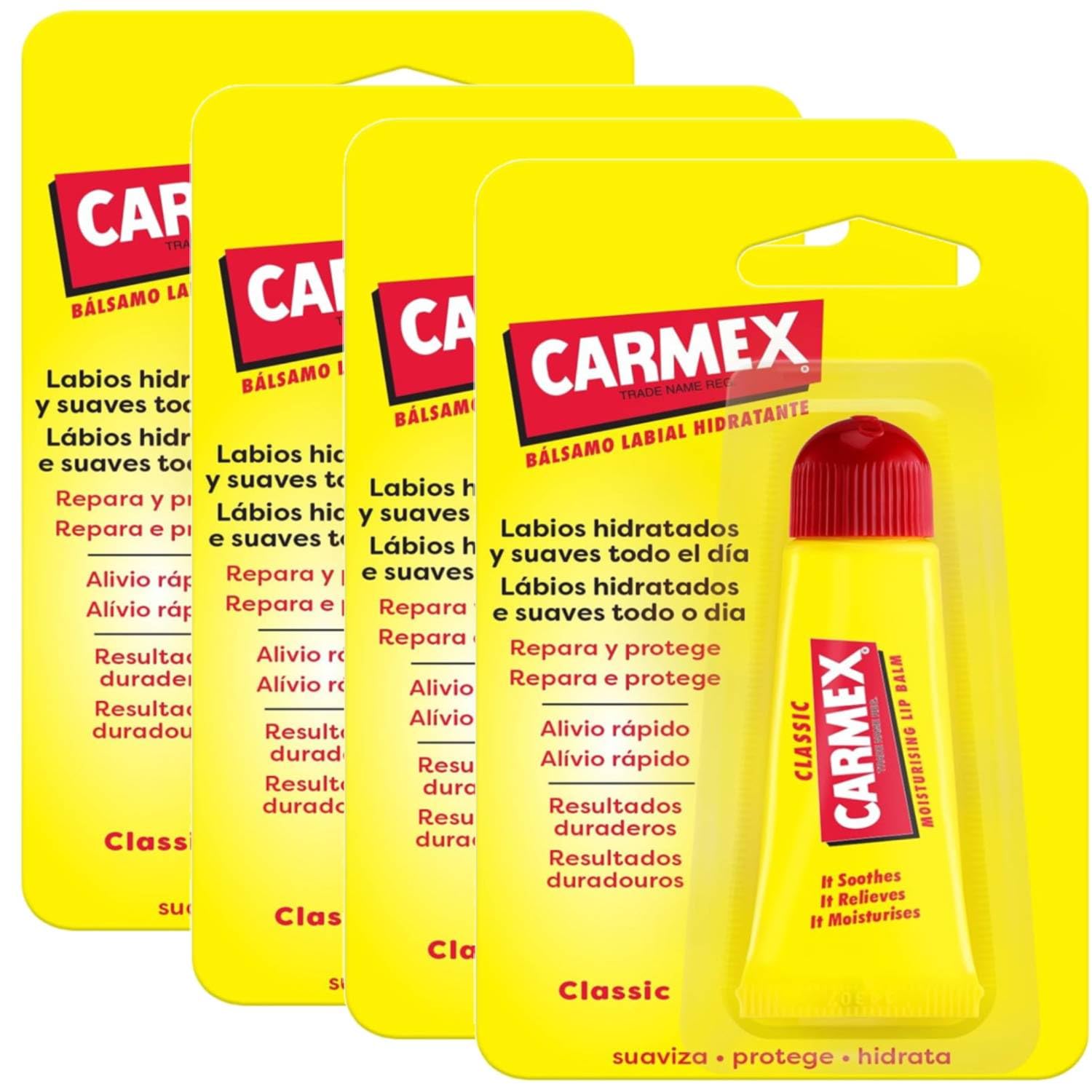 Carmex Lip Balm is the perfect solution for caring for dry and dehydrated lips, with a wide range of irresistible flavors and scents. Each version is formulated to provide intense and long-lasting hydration, while protecting lips from the elements with premium ingredients such as menthol and cocoa butter. The various flavors and scents, from fresh and fruity to sweet and comforting, offer a unique sensory experience, making every application a moment of pleasure. Whether you prefer the freshness of cherry, the sweet taste of cherry, or the exotic fragrance of watermelon, Carmex offers a choice to suit every taste, for lips that are always soft, smooth, and protected. SAFETY WARNING For external use onlyWhether you prefer the freshness of cherry, the sweet taste of cherry, or the exotic fragrance of watermelon, Carmex offers a choice to suit every taste, for lips that are always soft, smooth, and protected. The different flavors and aromas, ranging from fresh and fruity to sweet and comforting, offer a unique sensory experience, making each application a moment of pleasure. Each version is formulated to provide intense and long-lasting hydration, while protecting lips from the elements with premium ingredients such as menthol and cocoa butter. Carmex Lip Balm is the perfect solution for caring for dry and dehydrated lips, with a wide range of irresistible scents and flavors.Carmex Classique Baume Lèvres Hydratant Tube 10 Gr 4 UnitésDESCRIPTION DU PRODUIT DESCRIPTION DU PRODUIT Carmex Baume à lèvres est la solution parfaite pour prendre soin des lèvres sèches et déshydratées, avec une large gamme de variantes aux parfums et goûts irrésistibles. Chaque version est formulée pour offrir une hydratation intense et durable, tout en protégeant les lèvres des intempéries grâce à des ingrédients de qualité supérieure tels que le menthol et le beurre de cacao. Les différentes variantes de goût et de parfum, allant du frais et fruité au doux et enveloppant, offrent une expérience sensorielle unique, rendant chaque application un moment de plaisir. Que vous préfériez la fraîcheur de la cerise, la saveur douce de la cerise ou le parfum exotique à la pastèque, Carmex offre un choix adapté à tous les goûts, pour des lèvres toujours douces, lisses et protégées. AVERTISSEMENT DE SÉCURITÉ Usage extérieur uniquementQue vous préfériez la fraîcheur de la cerise, la saveur douce de la cerise ou le parfum exotique à la pastèque, Carmex offre un choix adapté à tous les goûts, pour des lèvres toujours douces, lisses et protégées. Les différentes variantes de goût et de parfum, allant du frais et fruité au doux et enveloppant, offrent une expérience sensorielle unique, rendant chaque application un moment de plaisir. Chaque version est formulée pour offrir une hydratation intense et durable, tout en protégeant les lèvres des intempéries grâce à des ingrédients de qualité supérieure tels que le menthol et le beurre de cacao. Carmex Baume à lèvres est la solution parfaite pour prendre soin des lèvres sèches et déshydratées, avec une large gamme de variantes aux parfums et goûts irrésistibles.