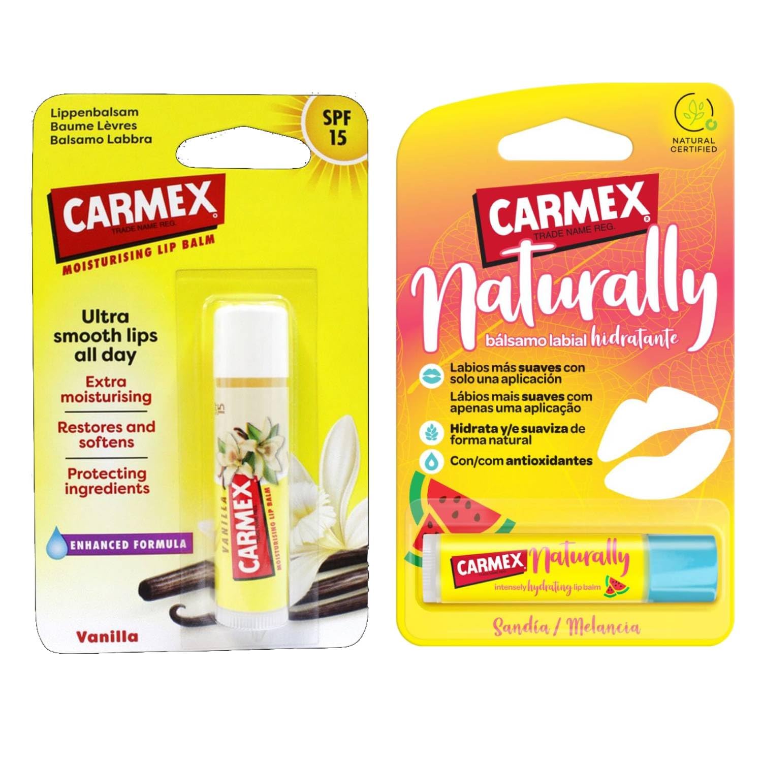 Carmex Lip Balm is the perfect solution for caring for dry and dehydrated lips, with a wide range of irresistible flavors and scents. Each version is formulated to provide intense and long-lasting hydration, while protecting lips from the elements with premium ingredients such as menthol and cocoa butter. The various flavors and scents, from fresh and fruity to sweet and comforting, offer a unique sensory experience, making every application a moment of pleasure. Whether you prefer the freshness of cherry, the sweet taste of cherry, or the exotic fragrance of watermelon, Carmex offers a choice to suit every taste, for lips that are always soft, smooth, and protected. SAFETY WARNING For external use onlyWhether you prefer the freshness of cherry, the sweet taste of cherry, or the exotic fragrance of watermelon, Carmex offers a choice to suit every taste, for lips that are always soft, smooth, and protected. The different flavors and aromas, ranging from fresh and fruity to sweet and comforting, offer a unique sensory experience, making each application a moment of pleasure. Each version is formulated to provide intense and long-lasting hydration, while protecting lips from the elements with premium ingredients such as menthol and cocoa butter. Carmex Lip Balm is the perfect solution for caring for dry and dehydrated lips, with a wide range of irresistible scents and flavors.Carmex Baume Lèvres Combo Naturally Pastèque Et Vanille Extra Hydratant Spf 15DESCRIPTION DU PRODUIT DESCRIPTION DU PRODUIT Carmex Baume à lèvres est la solution parfaite pour prendre soin des lèvres sèches et déshydratées, avec une large gamme de variantes aux parfums et goûts irrésistibles. Chaque version est formulée pour offrir une hydratation intense et durable, tout en protégeant les lèvres des intempéries grâce à des ingrédients de qualité supérieure tels que le menthol et le beurre de cacao. Les différentes variantes de goût et de parfum, allant du frais et fruité au doux et enveloppant, offrent une expérience sensorielle unique, rendant chaque application un moment de plaisir. Que vous préfériez la fraîcheur de la cerise, la saveur douce de la cerise ou le parfum exotique à la pastèque, Carmex offre un choix adapté à tous les goûts, pour des lèvres toujours douces, lisses et protégées. AVERTISSEMENT DE SÉCURITÉ Usage extérieur uniquementQue vous préfériez la fraîcheur de la cerise, la saveur douce de la cerise ou le parfum exotique à la pastèque, Carmex offre un choix adapté à tous les goûts, pour des lèvres toujours douces, lisses et protégées. Les différentes variantes de goût et de parfum, allant du frais et fruité au doux et enveloppant, offrent une expérience sensorielle unique, rendant chaque application un moment de plaisir. Chaque version est formulée pour offrir une hydratation intense et durable, tout en protégeant les lèvres des intempéries grâce à des ingrédients de qualité supérieure tels que le menthol et le beurre de cacao. Carmex Baume à lèvres est la solution parfaite pour prendre soin des lèvres sèches et déshydratées, avec une large gamme de variantes aux parfums et goûts irrésistibles.