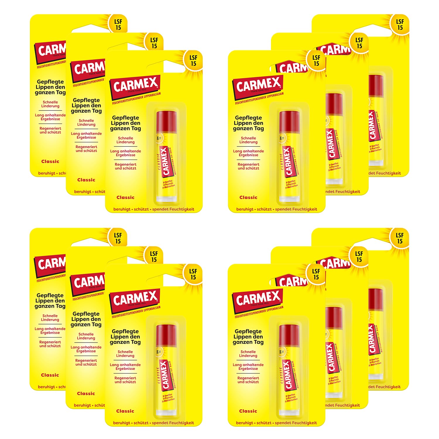 Carmex Lippenbalsam Stick, Paquete 12er (12 ml x 4)