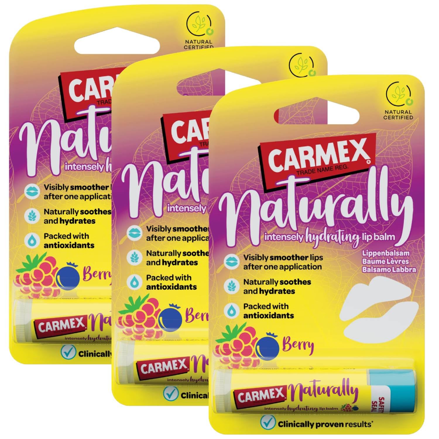 Carmex Lip Balm is your daily ally against dryness, cracking, and dehydration. Its unique formula, enriched with soothing and calming ingredients, provides an immediate feeling of relief and comfort, leaving lips soft, moisturized, and protected for a long time. Key benefits: deep hydration for dry and dehydrated lips soothing effect on chapped or irritated lips protection against external agents (wind, cold, sun) classic Carmex formula with iconic ingredients such as menthol, camphor, and cocoa butter available in a variety of fresh and fruity fragrances. Carmex lip balm is ideal to take with you everywhere, perfect for all seasons and situations. Try it and discover why it's loved all over the world! INGREDIENTS Peach and Mango - Lime - Forest Fruits - Tropical SAFETY WARNING For external use only. See moreAvailable in a variety of fresh and fruity fragrances: choose your favorite from lemon, tropical, peach, and mango. Comfortable, non-sticky texture: applies easily, leaving lips feeling soft, smooth, and visibly healthier. Effective protection against the elements: helps protect your lips from wind, cold, and sun, ideal for any season. Intense and long-lasting hydration: deeply nourishes lips with cocoa butter and soothing agents. Immediate relief for dry, chapped lips: iconic formula with menthol and camphor for immediate soothing and cooling action.Carmex Baume à lèvres hydratant et protecteur pour lèvres sèches et fissurées avec protection solaire (3 unités, baies)DESCRIPTION DU PRODUIT DESCRIPTION DU PRODUIT Le baume à lèvres Carmex est votre allié quotidien contre la sécheresse, les craquelures et la déshydratation. Sa formule unique, enrichie en ingrédients apaisants et apaisants, apporte une sensation immédiate de soulagement et de confort, laissant les lèvres souples, hydratées et protégées pendant longtemps. Avantages principaux : hydratation profonde pour les lèvres sèches et déshydratées effet apaisant sur les lèvres gercées ou irritées protection contre les agents extérieurs (vent, froid, soleil) formule classique Carmex avec des ingrédients emblématiques tels que le menthol, le camphre et le beurre de cacao disponible en différentes fragrances fraîches et fruitées. Le baume Carmex est idéal à emporter partout avec vous, parfait pour toutes les saisons et situations. Essayez-le et découvrez pourquoi il est aimé partout dans le monde ! INGRÉDIENTS Pêche et mangue - Lime - Fruits de forêt - Tropical AVERTISSEMENT DE SÉCURITÉ Usage extérieur uniquement. Voir plusDisponible en différentes fragrances fraîches et fruitées : choisissez votre variante préférée parmi les citrons, tropiques, pêche et mangue. Texture confortable et non collante : s'applique facilement, laissant les lèvres souples, lisses et visiblement plus saines. Protection efficace contre les agents extérieurs : aide à protéger vos lèvres du vent, du froid et du soleil, idéal en toute saison. Hydratation intense et durable : nourrit les lèvres en profondeur grâce au beurre de cacao et aux agents apaisants. Soulagement immédiat pour les lèvres sèches et gercées : formule emblématique avec menthol et camphre pour une action apaisante et rafraîchissante immédiate.