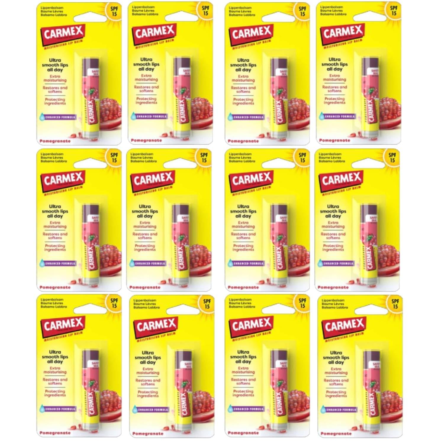 Carmex Lip Balm is the perfect solution for caring for dry and dehydrated lips, with a wide range of irresistible flavors and scents. Each version is formulated to provide intense and long-lasting hydration, while protecting lips from the elements with premium ingredients such as menthol and cocoa butter. The various flavors and scents, from fresh and fruity to sweet and comforting, offer a unique sensory experience, making every application a moment of pleasure. Whether you prefer the freshness of cherry, the sweet taste of cherry, or the exotic fragrance of watermelon, Carmex offers a choice to suit every taste, for lips that are always soft, smooth, and protected. SAFETY WARNING For external use onlyWhether you prefer the freshness of cherry, the sweet taste of cherry, or the exotic fragrance of watermelon, Carmex offers a choice to suit every taste, for lips that are always soft, smooth, and protected. The different flavors and aromas, ranging from fresh and fruity to sweet and comforting, offer a unique sensory experience, making each application a moment of pleasure. Each version is formulated to provide intense and long-lasting hydration, while protecting lips from the elements with premium ingredients such as menthol and cocoa butter. Carmex Lip Balm is the perfect solution for caring for dry and dehydrated lips, with a wide range of irresistible scents and flavors.Carmex Grenade Baume Lèvres Ultra Hydratant Spf 15 12 UnitésDESCRIPTION DU PRODUIT DESCRIPTION DU PRODUIT Carmex Baume à lèvres est la solution parfaite pour prendre soin des lèvres sèches et déshydratées, avec une large gamme de variantes aux parfums et goûts irrésistibles. Chaque version est formulée pour offrir une hydratation intense et durable, tout en protégeant les lèvres des intempéries grâce à des ingrédients de qualité supérieure tels que le menthol et le beurre de cacao. Les différentes variantes de goût et de parfum, allant du frais et fruité au doux et enveloppant, offrent une expérience sensorielle unique, rendant chaque application un moment de plaisir. Que vous préfériez la fraîcheur de la cerise, la saveur douce de la cerise ou le parfum exotique à la pastèque, Carmex offre un choix adapté à tous les goûts, pour des lèvres toujours douces, lisses et protégées. AVERTISSEMENT DE SÉCURITÉ Usage extérieur uniquementQue vous préfériez la fraîcheur de la cerise, la saveur douce de la cerise ou le parfum exotique à la pastèque, Carmex offre un choix adapté à tous les goûts, pour des lèvres toujours douces, lisses et protégées. Les différentes variantes de goût et de parfum, allant du frais et fruité au doux et enveloppant, offrent une expérience sensorielle unique, rendant chaque application un moment de plaisir. Chaque version est formulée pour offrir une hydratation intense et durable, tout en protégeant les lèvres des intempéries grâce à des ingrédients de qualité supérieure tels que le menthol et le beurre de cacao. Carmex Baume à lèvres est la solution parfaite pour prendre soin des lèvres sèches et déshydratées, avec une large gamme de variantes aux parfums et goûts irrésistibles.