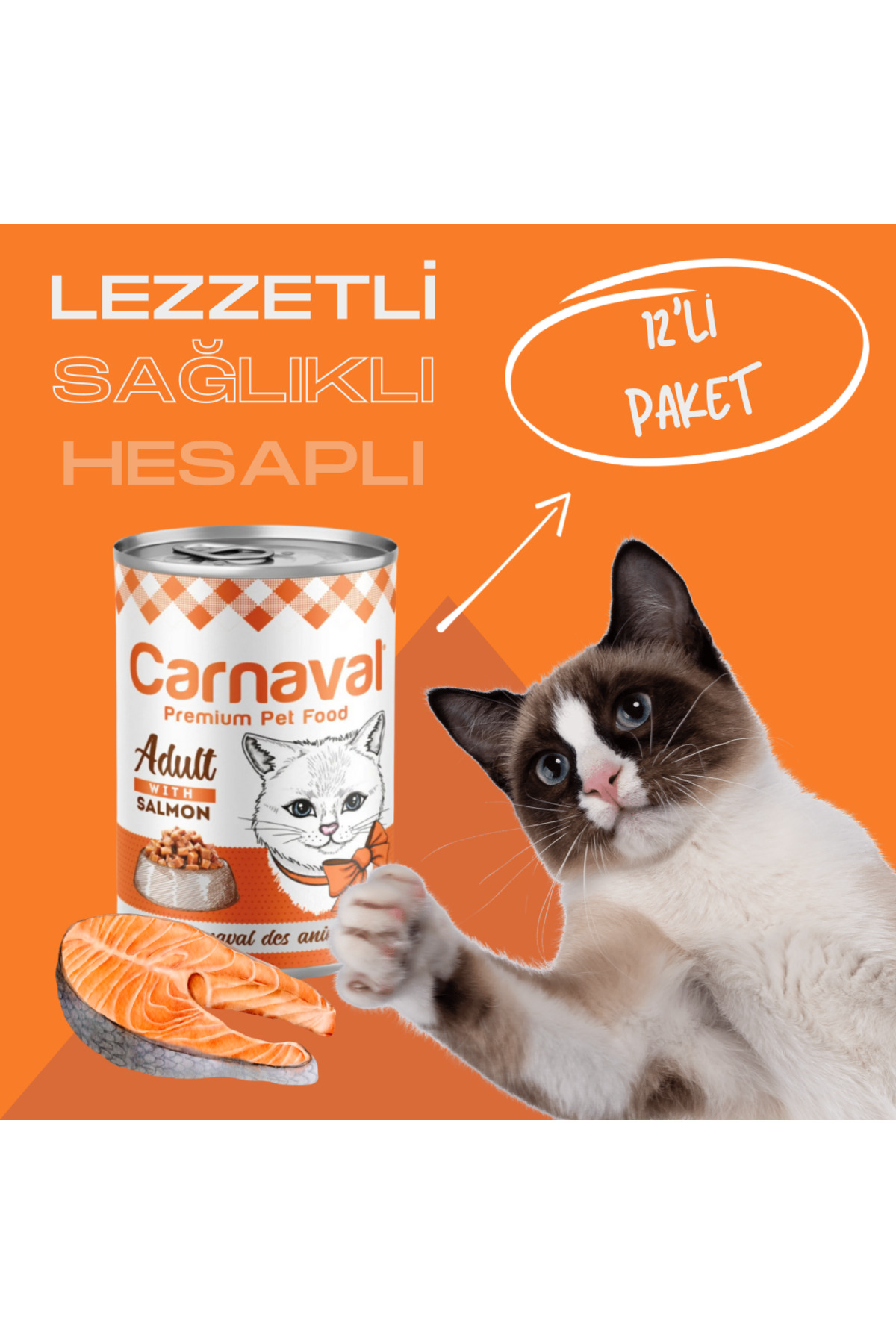 Carnaval Premium Adult Cat Canned Food with Salmon 400 gr X 12 Pieces