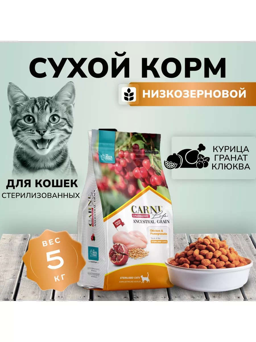 Carni Life CARNI LIFE сухой корм для стерилизованных кошек с курицей и гранатом 5 кг