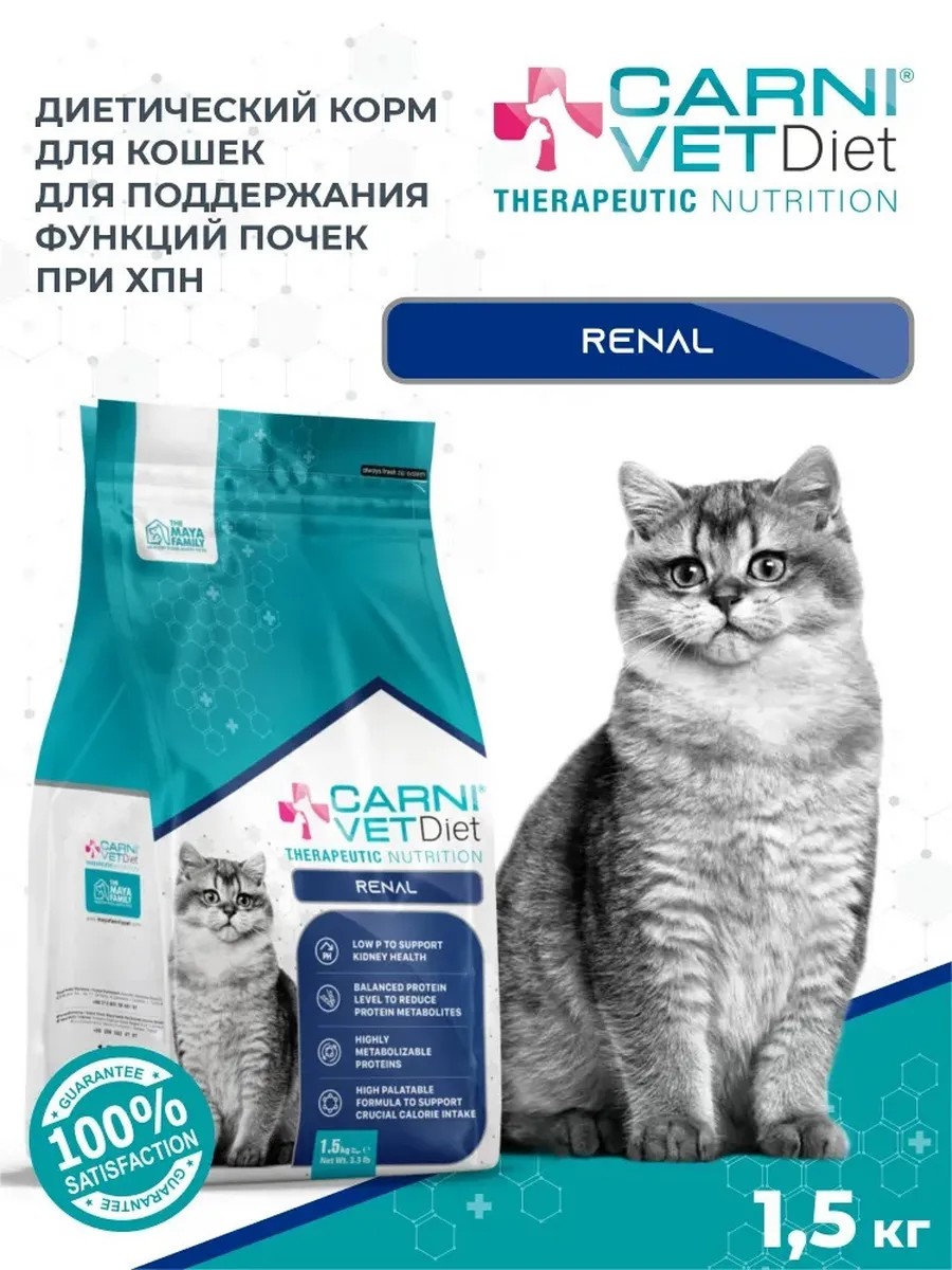 Carni Vet Diet Сухой корм Vet Diet RENAL для кошек, здоровье почек 1,5 кг