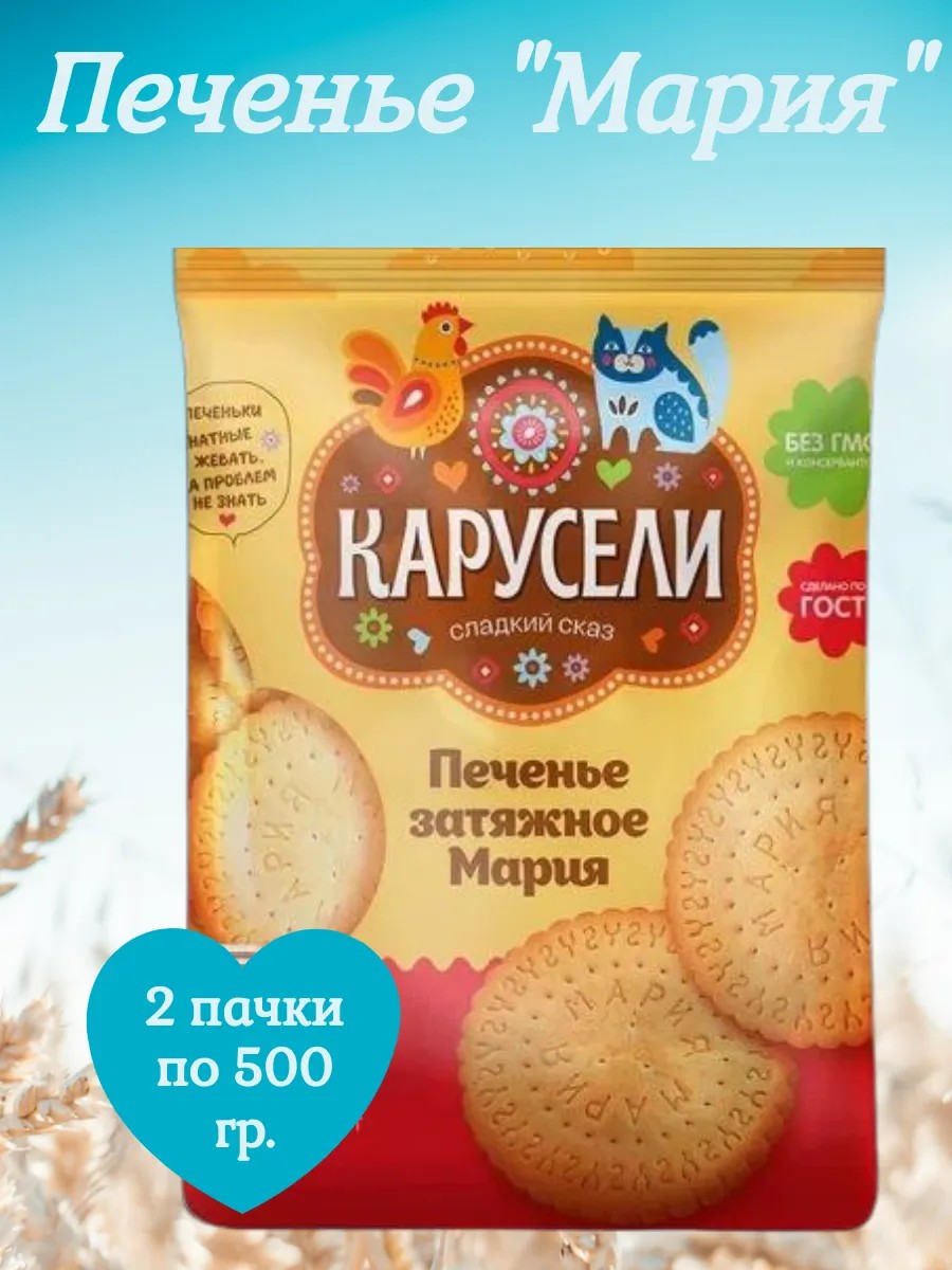 КАРУСЕЛИ Печенье Мария затяжное, 2 пачки по 500 гр.