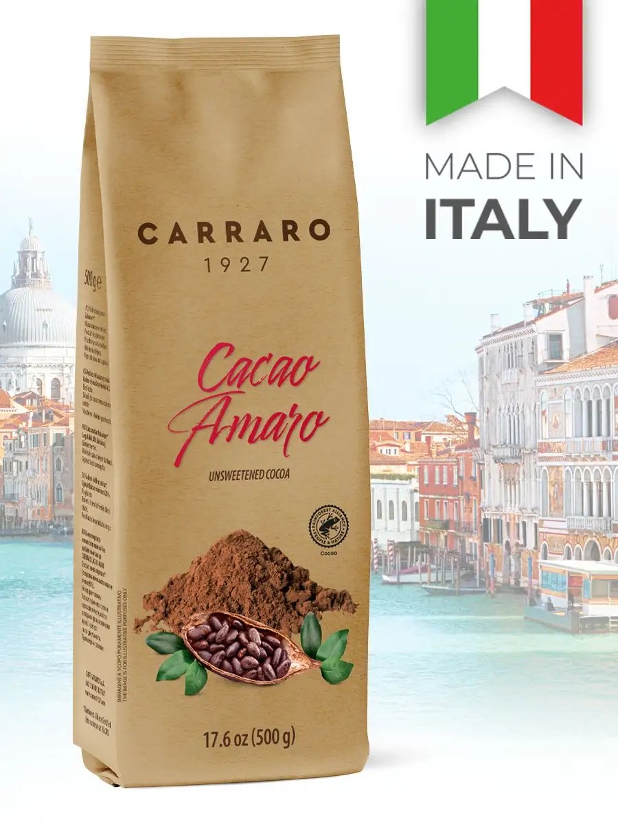 Carraro Cacao Amaro - вкуснейшее растворимое какао без сахара в составе. Позвольте себе кружку горячего шоколада зимним морозным вечером или приготовьте шоколадный брауни с Carraro Cacao Amaro.