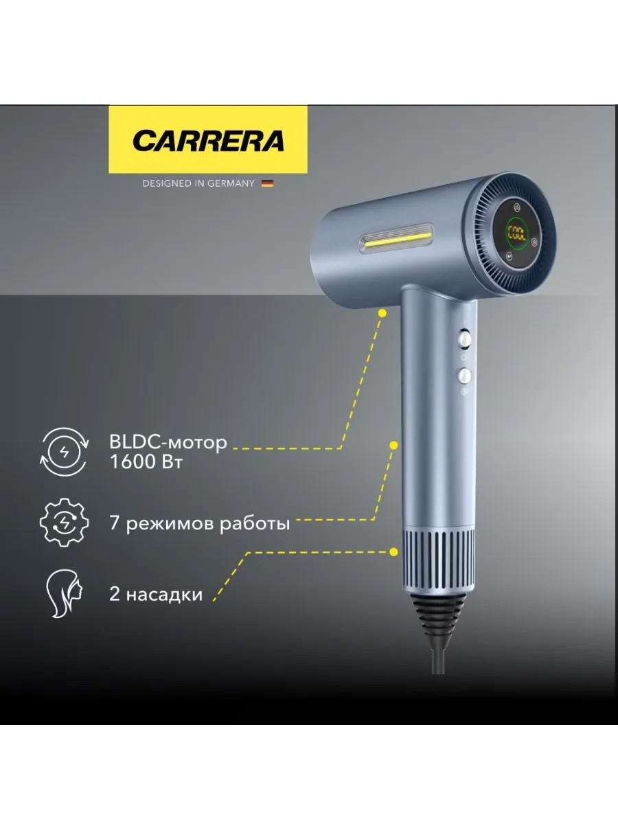 The Carrera #541 hair dryer is equipped with a high-power 1600W BLDC motor.