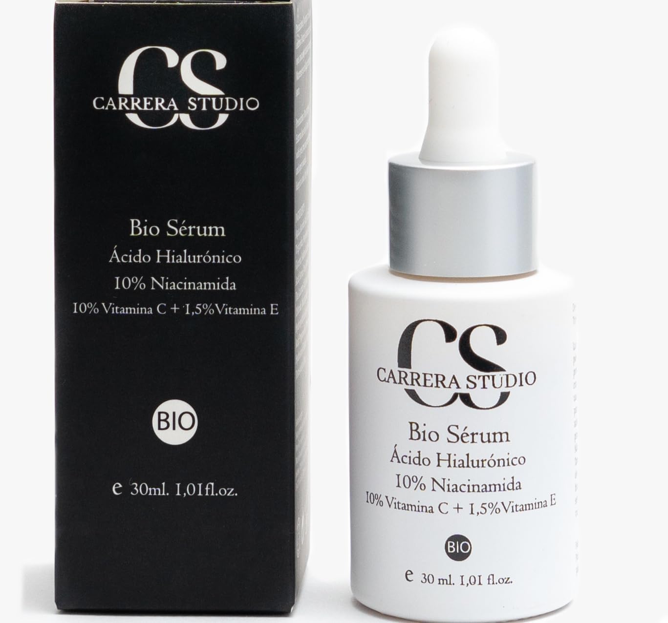 Transform your skincare routine with Carrera Studio's Triple Action Dark Spot Serum, an advanced solution that treats dark spots, acne, and signs of aging in one step. Its formula with 10 niacinamide, vitamin C, and hyaluronic acid is developed to deliver visible results from the first application. High efficacy with natural actives: With 92 natural ingredients, this serum cares for and protects your skin while working intensively on dark spots, post-acne marks, and uneven skin tone. Immediate flash effect: Its warm, illuminating finish instantly improves the appearance of the face, bringing freshness and radiance without the need for makeup. Soothing and anti-inflammatory action: The high concentration of niacinamide fights active acne, soothes rosacea and psoriasis flare-ups, and reduces redness and irritation. It is ideal for reactive skin. Lightweight hydration, balanced skin: Hyaluronic acid provides deep hydration with a light, non-greasy texture, leaving skin supple and protected all day long. Smart treatment for all skin types: Suitable for women and men. Use daily, morning and evening, before your usual cream. Delivers a unified complexion, firmness, and visibly younger-looking skin. This Carrera Studio product is duly registered with the European Union's Cosmetic Products Notification Portal (CPNP), ensuring it complies with European standards for cosmetic product safety and traceability. SAFETY WARNING For external use only. Avoid contact with eyes. Keep away from fire or direct heat sources. Transform your skincare routine with Carrera Studio's Triple Action Dark Spot Serum, an advanced solution that treats dark spots, acne, and signs of aging in one step. Its formula with 10 niacinamide, vitamin C, and hyaluronic acid is developed to deliver visible results from the first application. High efficacy with natural actives: With 92 natural ingredients, this serum cares for and protects your skin while working intensively on dark spots, post-acne marks, and uneven skin tone. Immediate flash effect: Its warm, illuminating finish instantly improves the appearance of the face, bringing freshness and radiance without the need for makeup. Soothing and anti-inflammatory action: The high concentration of niacinamide fights active acne, soothes rosacea and psoriasis flare-ups, and reduces redness and irritation. It is ideal for reactive skin. Lightweight hydration, balanced skin: Hyaluronic acid provides deep hydration with a light, non-greasy texture, leaving skin supple and protected all day long. Smart treatment for all skin types: Suitable for women and men. Use daily, morning and evening, before your usual cream. Delivers a unified complexion, firmness, and visibly younger-looking skin. This Carrera Studio product is duly registered with the European Union's Cosmetic Products Notification Portal (CPNP), ensuring it complies with European standards for cosmetic product safety and traceability. SAFETY WARNING For external use only. Avoid contact with eyes. Keep away from fire or direct heat sources.Sérum triple action anti-taches 30 mlDESCRIPTION DU PRODUIT DESCRIPTION DU PRODUIT Transformez votre routine de soin du visage avec le sérum anti-taches triple action de Carrera Studio, une solution avancée qui traite les taches, l'acné et le vieillissement en un seul geste. Sa formule avec 10 de niacinamide, de vitamine C et d'acide hyaluronique est développée pour offrir des résultats visibles dès la première application. Haute efficacité avec des actifs naturels : avec 92 d'ingrédients naturels, ce sérum prend soin et protège votre peau tout en travaillant intensément sur les taches brunes, les marques post-tacné et le teint inégal. Effet flash immédiat : sa finition chaude et illuminatrice améliore instantanément l'apparence du visage, apportant fraîcheur et luminosité sans avoir besoin de maquillage. Action apaisante et anti-inflammatoire : la haute concentration de niacinamide combat l'acné active, apaise les épidémies de rosacée et de psoriasis, et réduit les rougeurs et les irritations. Il est idéal pour les peaux réactives. Hydratation légère, peau équilibrée : l'acide hyaluronique offre une hydratation profonde avec une texture légère et sans sensation grasse, laissant la peau élastique et protégée toute la journée. Traitement intelligent pour tous les types de peau : convient aux femmes et aux hommes. Utilisez-le quotidiennement, matin et soir, avant votre crème habituelle. Apporte un teint unifié, une fermeté et une peau visiblement plus jeune. Ce produit Carrera Studio est dûment enregistré dans le portail de notification des produits cosmétiques (CPNP) de l'Union européenne, ce qui garantit qu'il est conforme aux normes européennes en matière de sécurité et de traçabilité des produits cosmétiques. AVERTISSEMENT DE SÉCURITÉ Pour usage externe uniquement. Éviter tout contact avec les yeux. Tenir à l'écart du feu ou des sources de chaleur directeTexture légère et concentrée.
