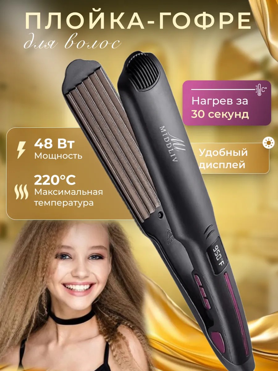 Электрощипцы с гофре и дисплеем нагревается за 30 секунд идеально подходят для любого типа волос, создавая прикорневой объем и добавляя стиль в прически. Утюжок профессиональный предназначен для завивки крупных локонов и создания модных афрокудрей, придавая образу выразительности и сохранит ваш объем на целый день. Этот бьюти инструмент обладает керамическими узкими пластинами, которые обеспечивают бережное отношение к тонким волосам и равномерный нагрев, не нужно долго держать на волосах, что очень положительно для волос. Стайлер для укладки легко справляется с локонами по всей длине с созданием самых разнообразных причесок. Нагревательные элементы позволяют быстро подготовить прибор к использованию. Завивка с его помощью проходит быстрее и эффективнее благодаря инновационной технологии нагрева. Это делает процесс комфортным и приятным. Удобный стильный дизайн обеспечивает простой захват, а эргономичная форма способствует легкому маневрированию при работе с электроприбором, при этом не нагревается и не обжигает руки. Это отличный инструмент для тех, кто стремится подчеркнуть естественную красоту своих прядей без лишних хлопот. Этот стайлер с вращающимся шнуром питания на 360 подходит как новичкам, так и профессионалам парикмахерам Стильный дизайн и красивая коробка делает его еще и отличным предметом для подарка.