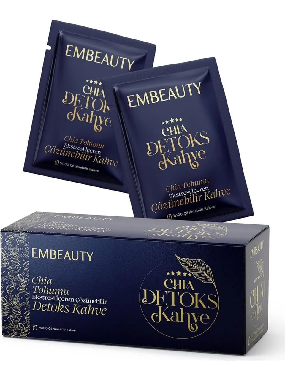 Embeauty Chia Seed Detox Coffee 30s Helps with Weight Loss and Edema Reduction. Chia seed detox coffee enriched with chia seed extract helps with the detoxification process. - Presented in single-use packets, providing practical and easy use. MANUFACTURER COORDINATES MUNAZZO FULFILLMENT B.V., RIETVELDENWEG 00043 A S-HERTOGENBOSCH 5222AP, 5222AP, S-HERTOGENBOSCH, NL